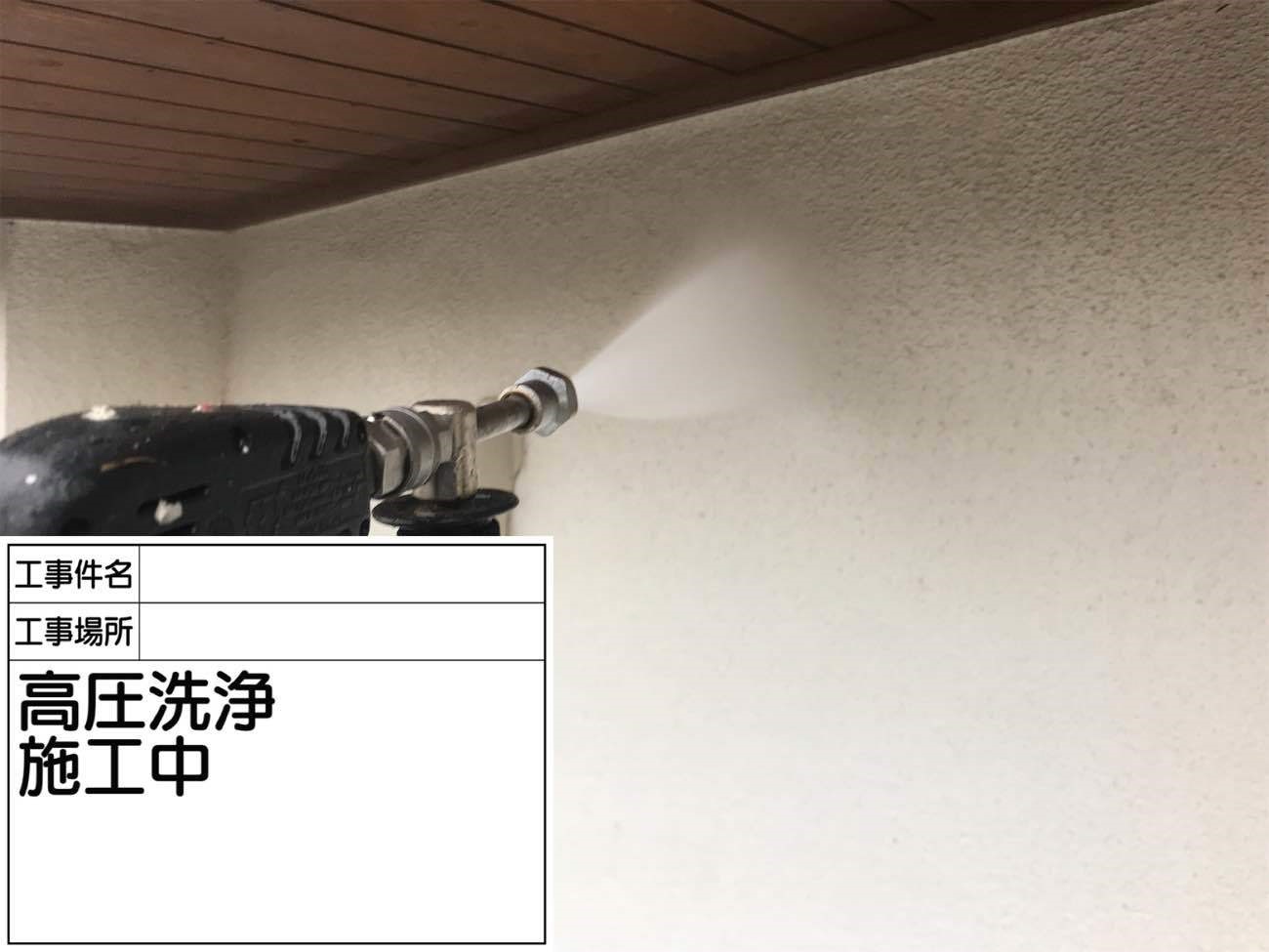 高圧洗浄機を使用して外壁の汚れやコケ・カビ、古い塗膜などを洗い流します。