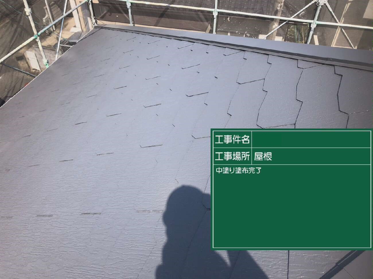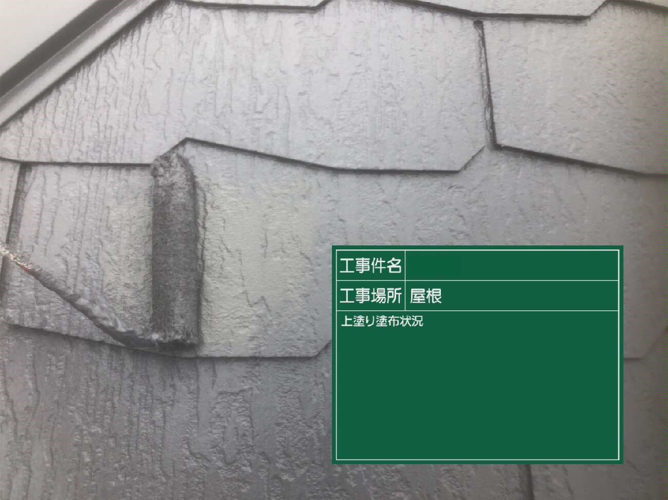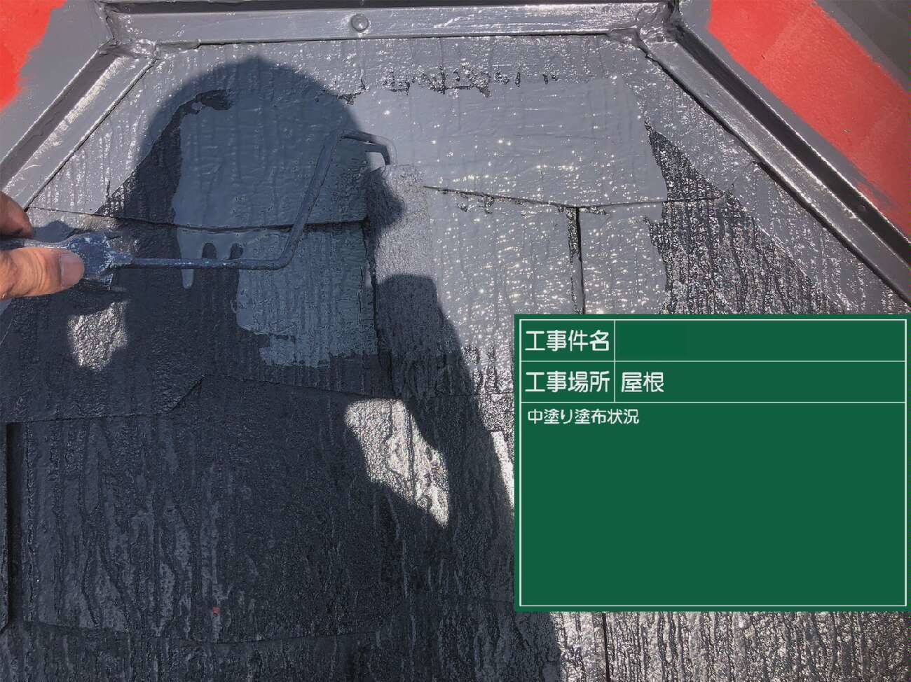 屋根の中塗り作業の様子です。