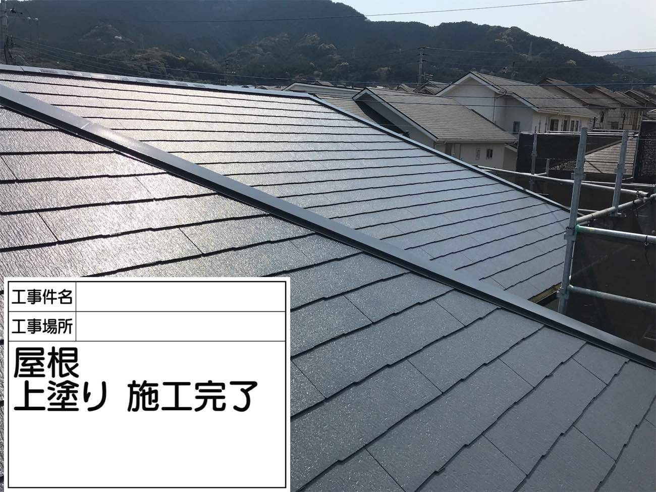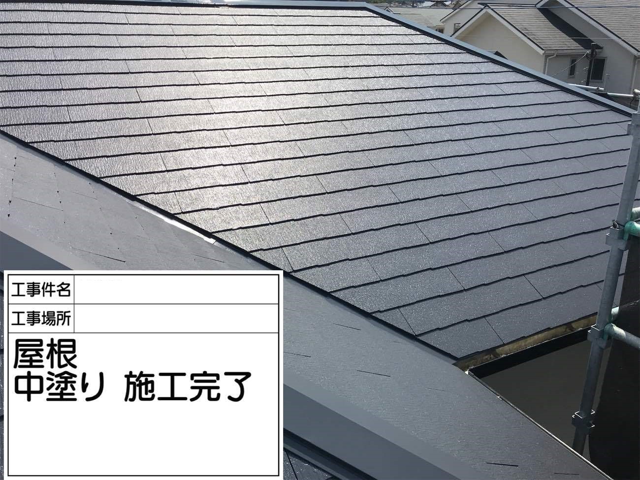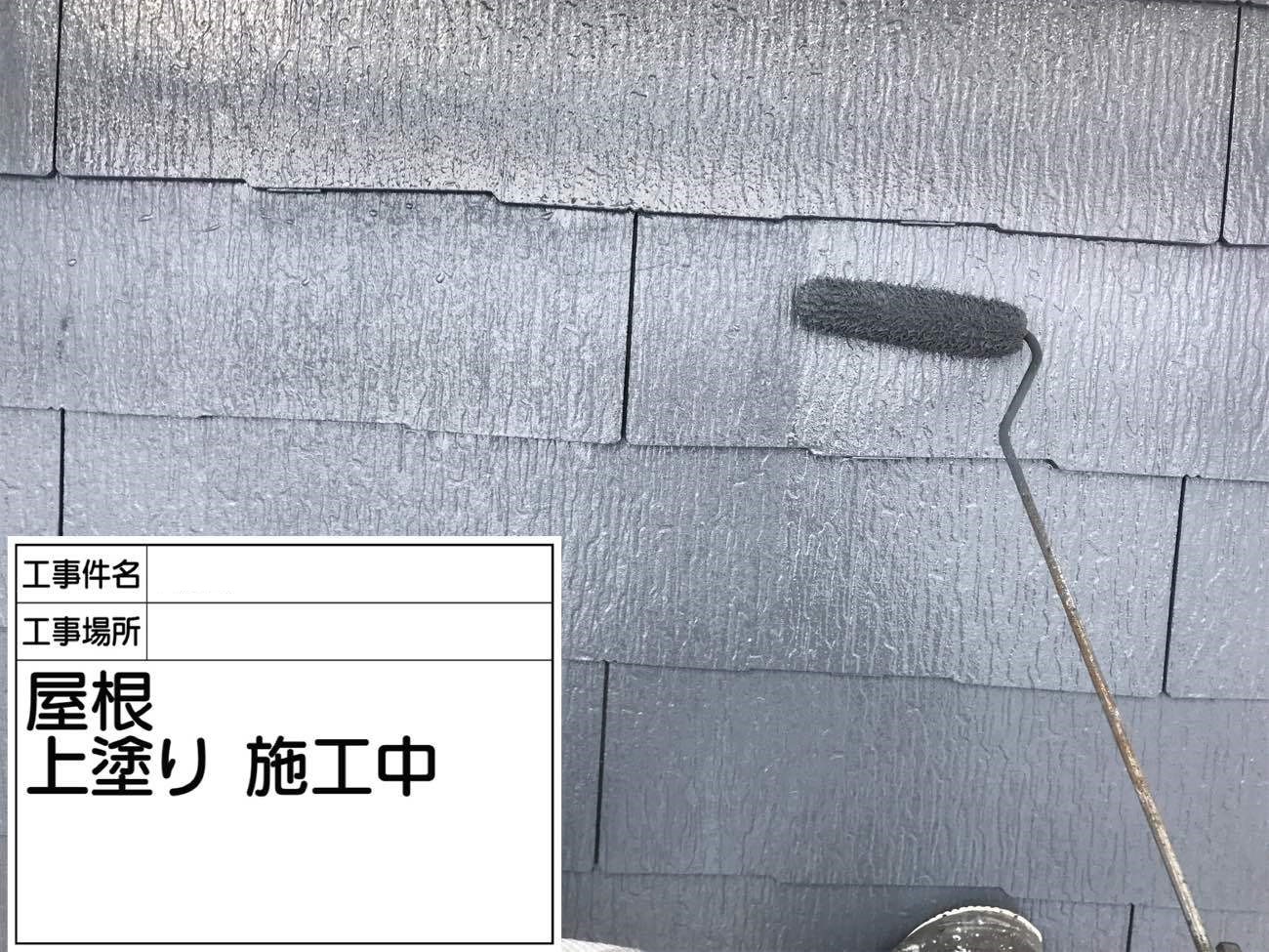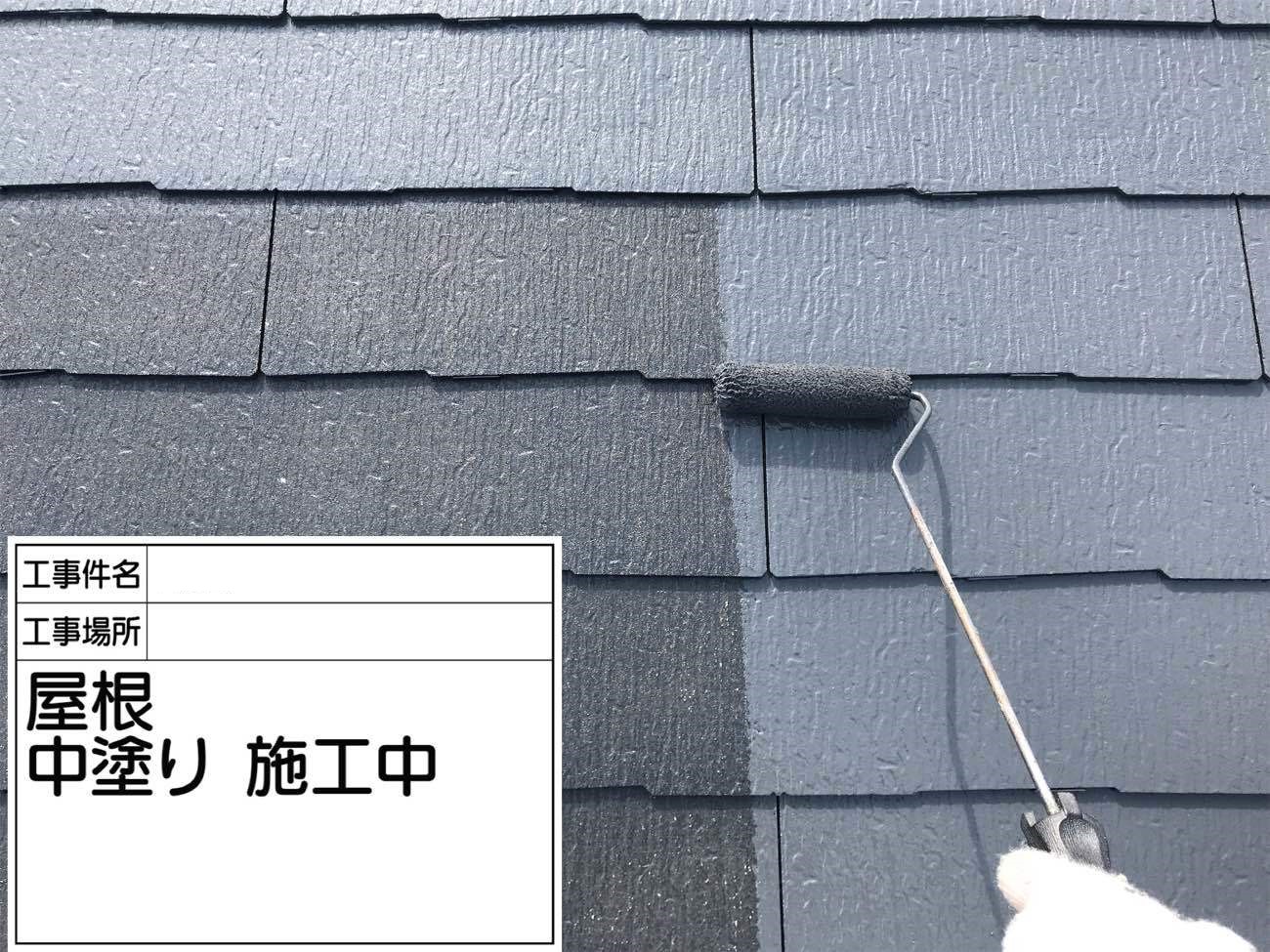 屋根の中塗り作業の様子です。