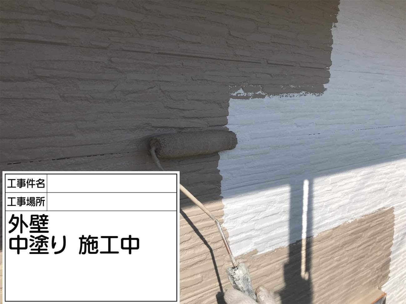 外壁の中塗り作業の様子です。