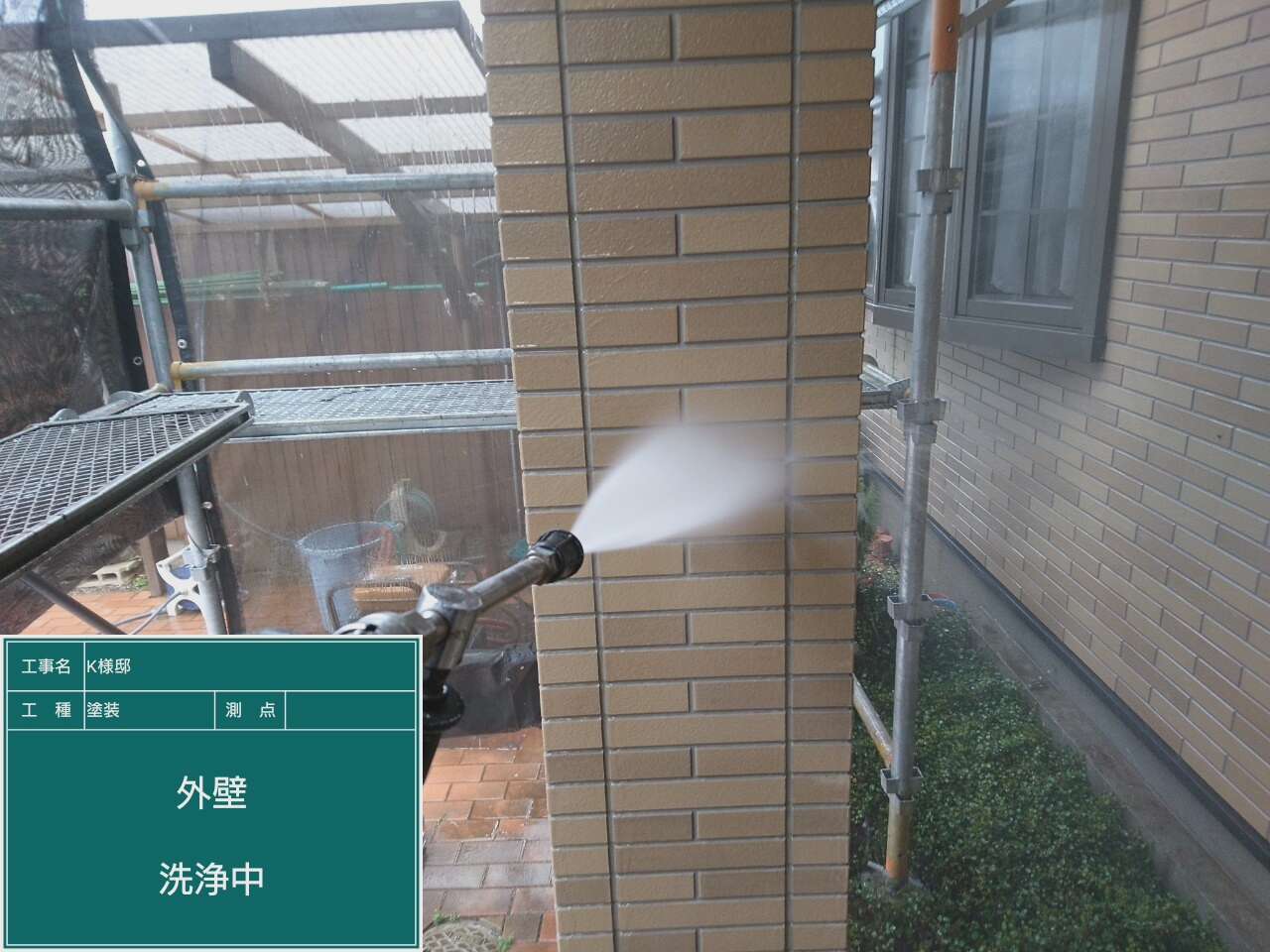 外壁や付帯部など、塗装箇所は全て洗浄していきます。