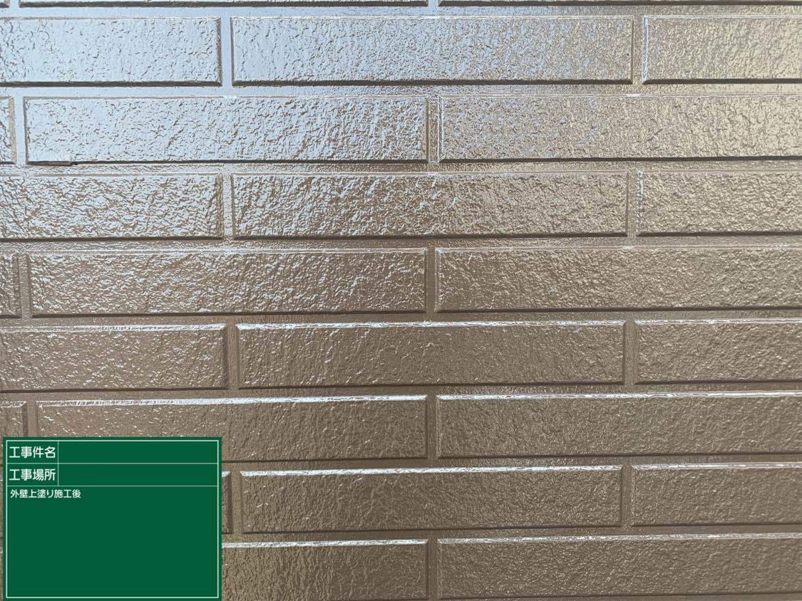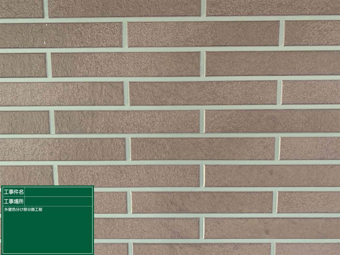 こちらのような目地のデザインがはっきりしているタイル調の場合は、目地出し施工といって、単色の塗りつぶしでないデザインにひと手間加えた施工を行うことも出来ます。