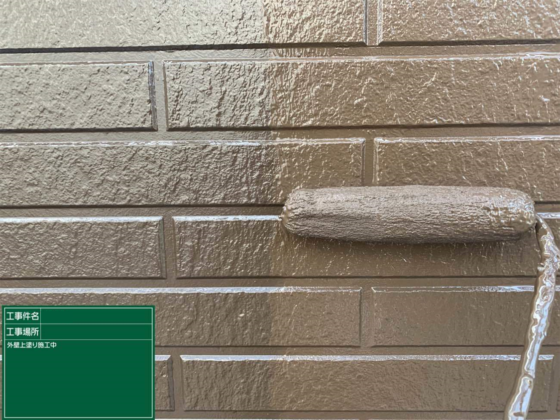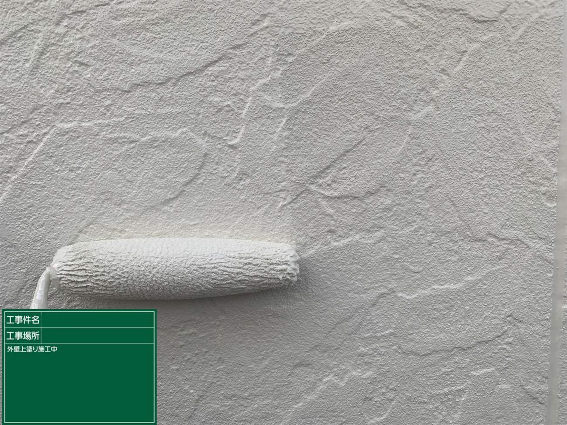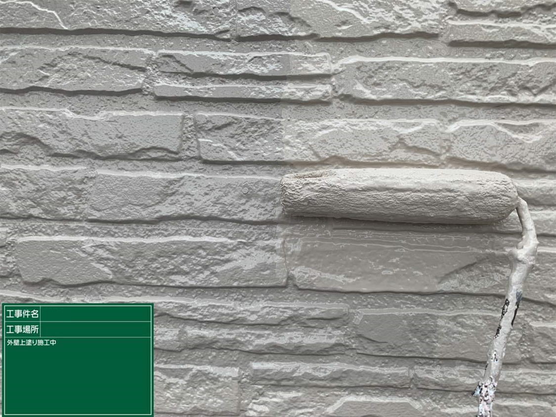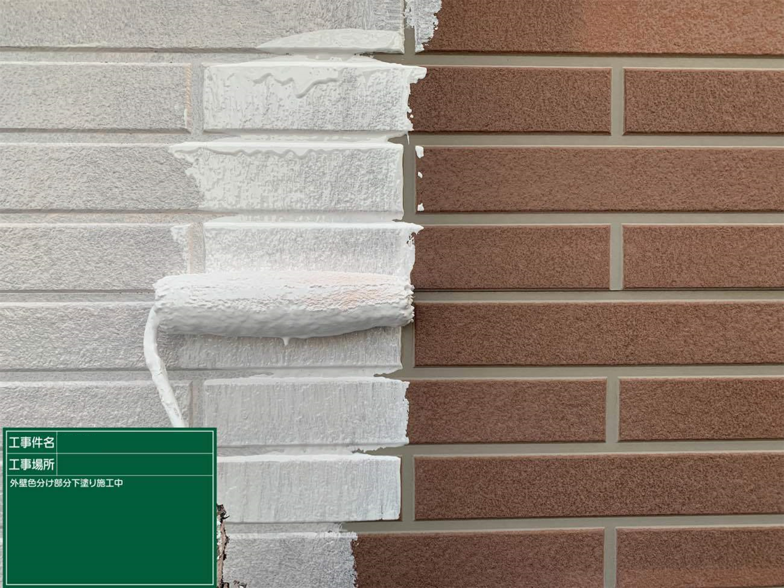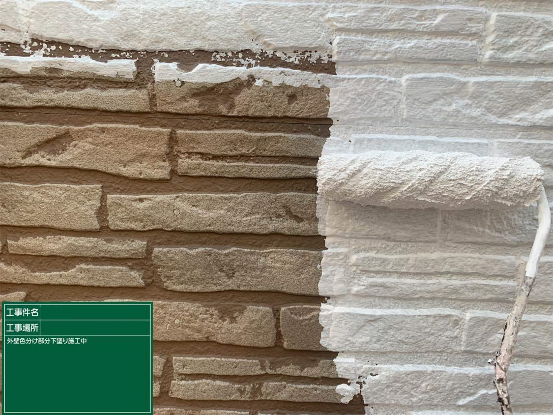 外壁の下塗り塗料は白です。細かな柄はどうしてもなくなってしまいますが、その分紫外線の影響を受けにくくなります。