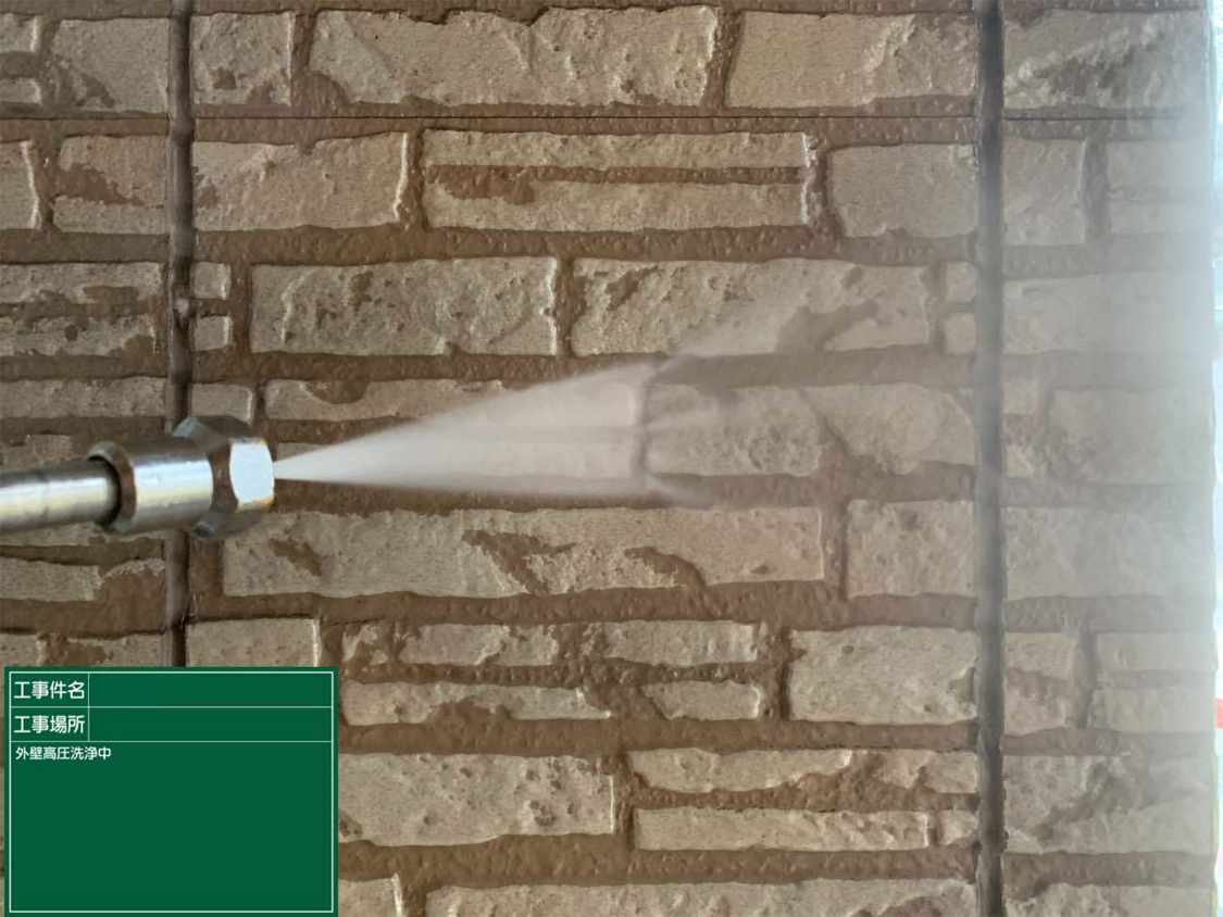 今回は3か所3色の色分けになります。まずは高圧洗浄をしっかりと。