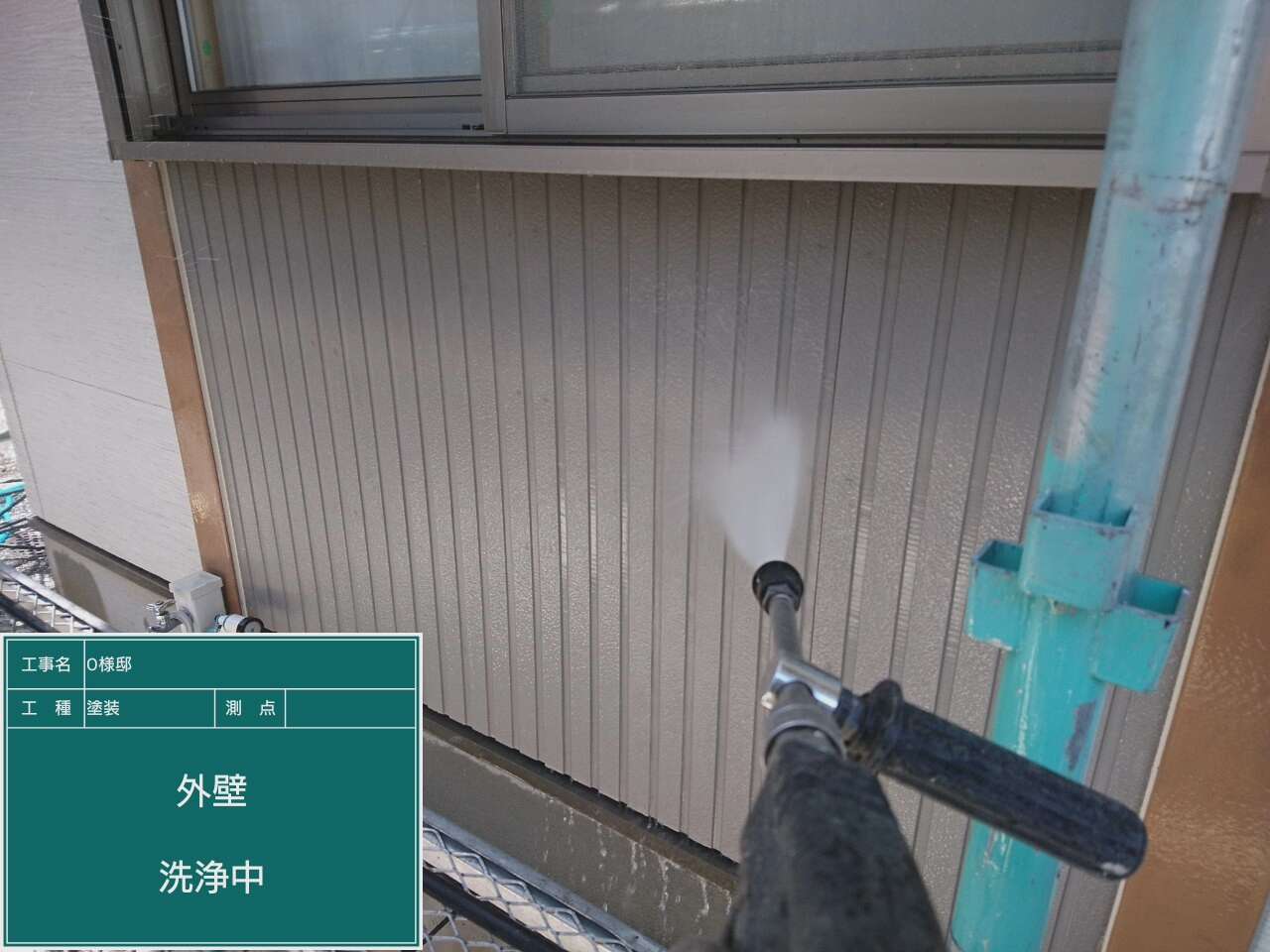 まずはおなじみの高圧洗浄。しっかり綺麗にしていきます。