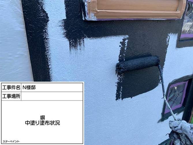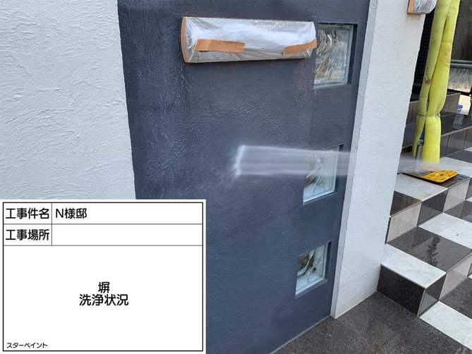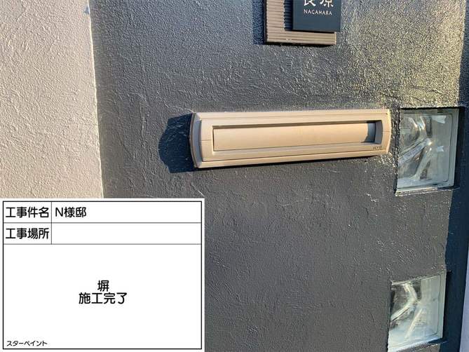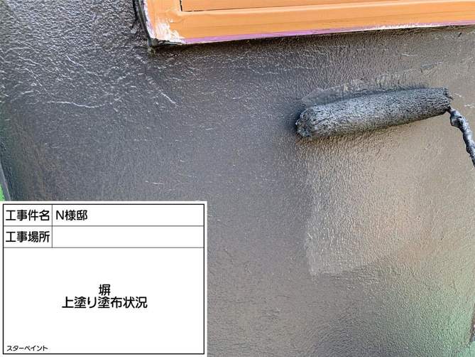 こちらの外塀は上記の外壁材と異なる材質で出来ていますが、外壁と同じく下塗り→中塗り→上塗りの三層塗りの工程で行います。