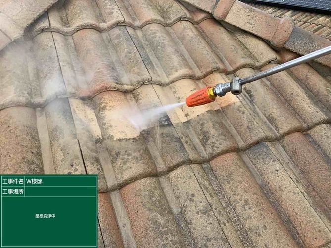 高圧洗浄をしっかりと行うことでコケやカビ、汚れを落とすだけでなく、古い塗膜も落とすことで新しい塗膜がしっかりと下地に密着することが出来るようになるため、塗装を行う前に必要な作業です。