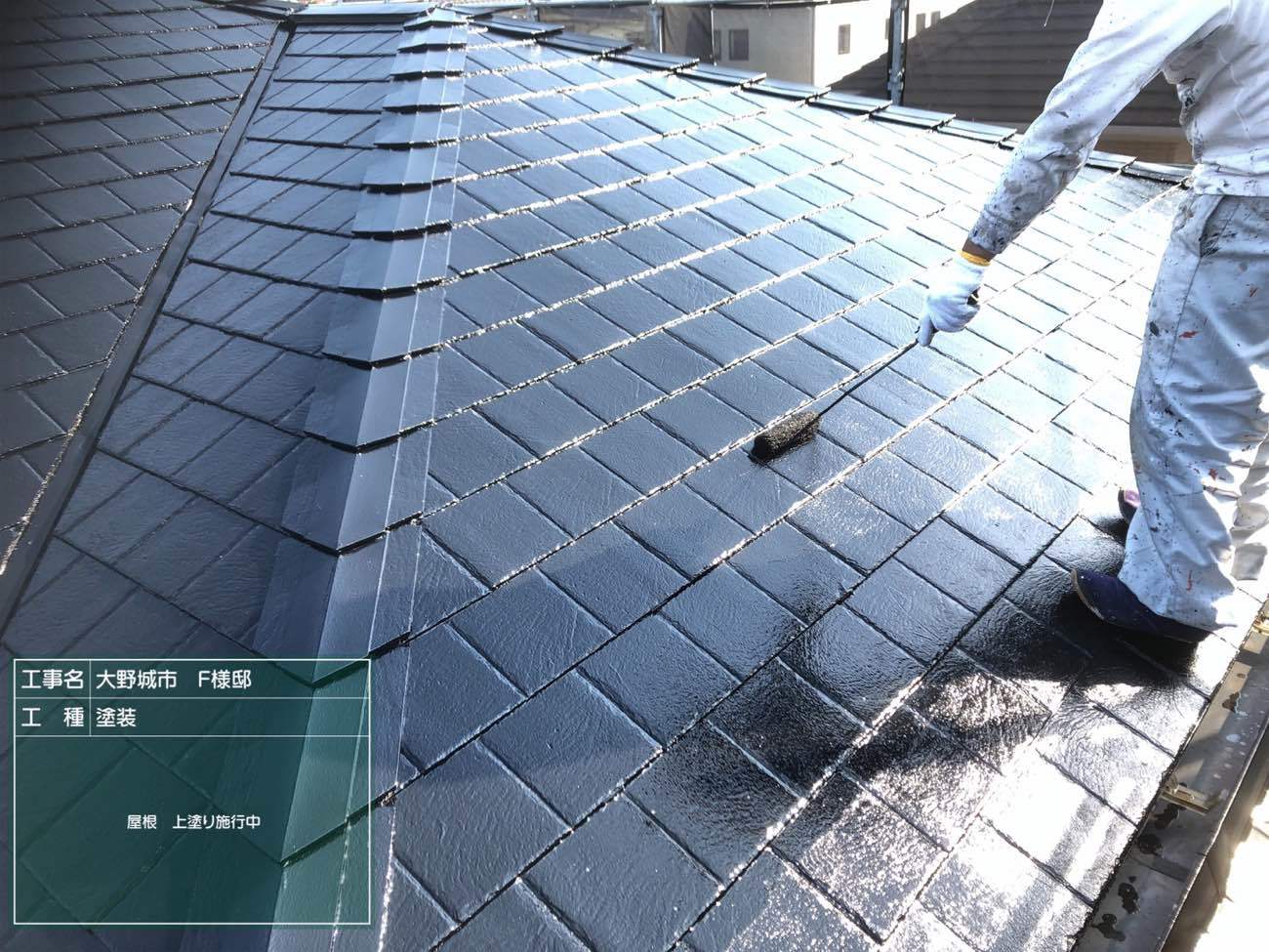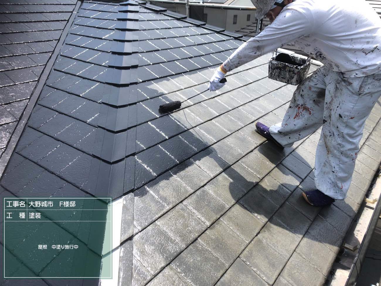 屋根の中塗り工程は塗装リフォーム工事のなかでも顕著に劣化の状況が浮き彫りになります。