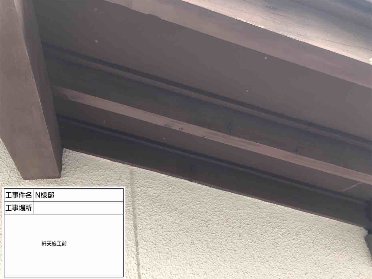 軒天、施工前の様子です。