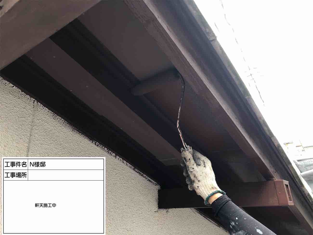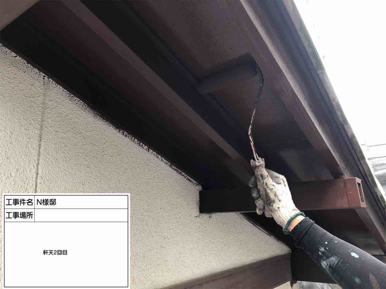 軒天2回目塗装中です。