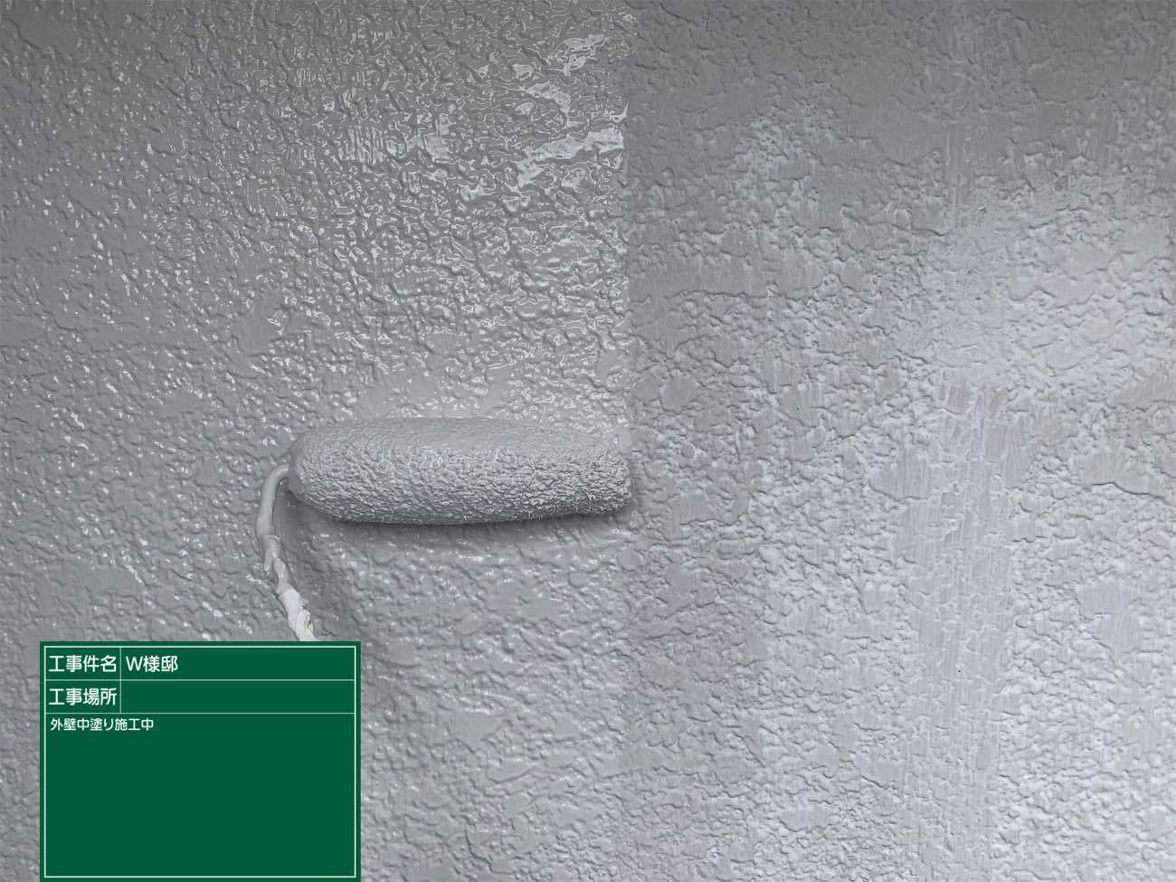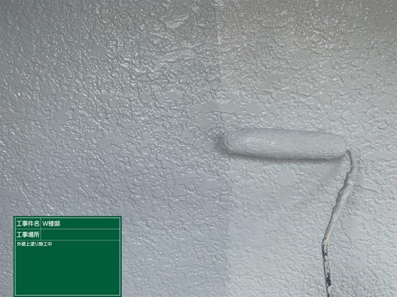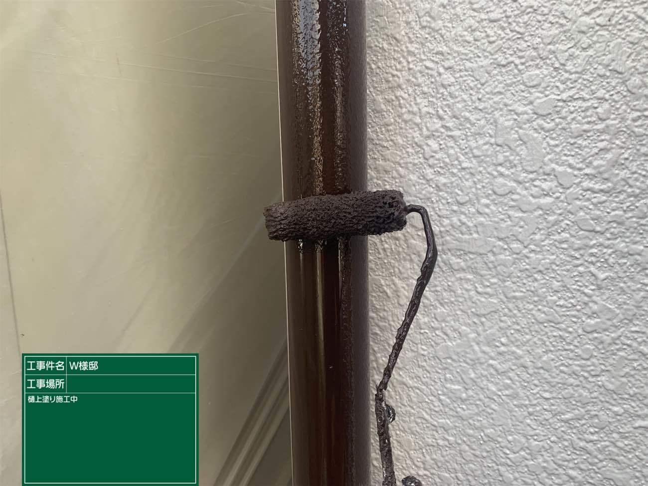 外壁、屋根が3回塗りだったのに対し今回は上塗り2回で完了です。まずは1回目