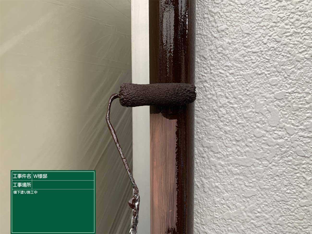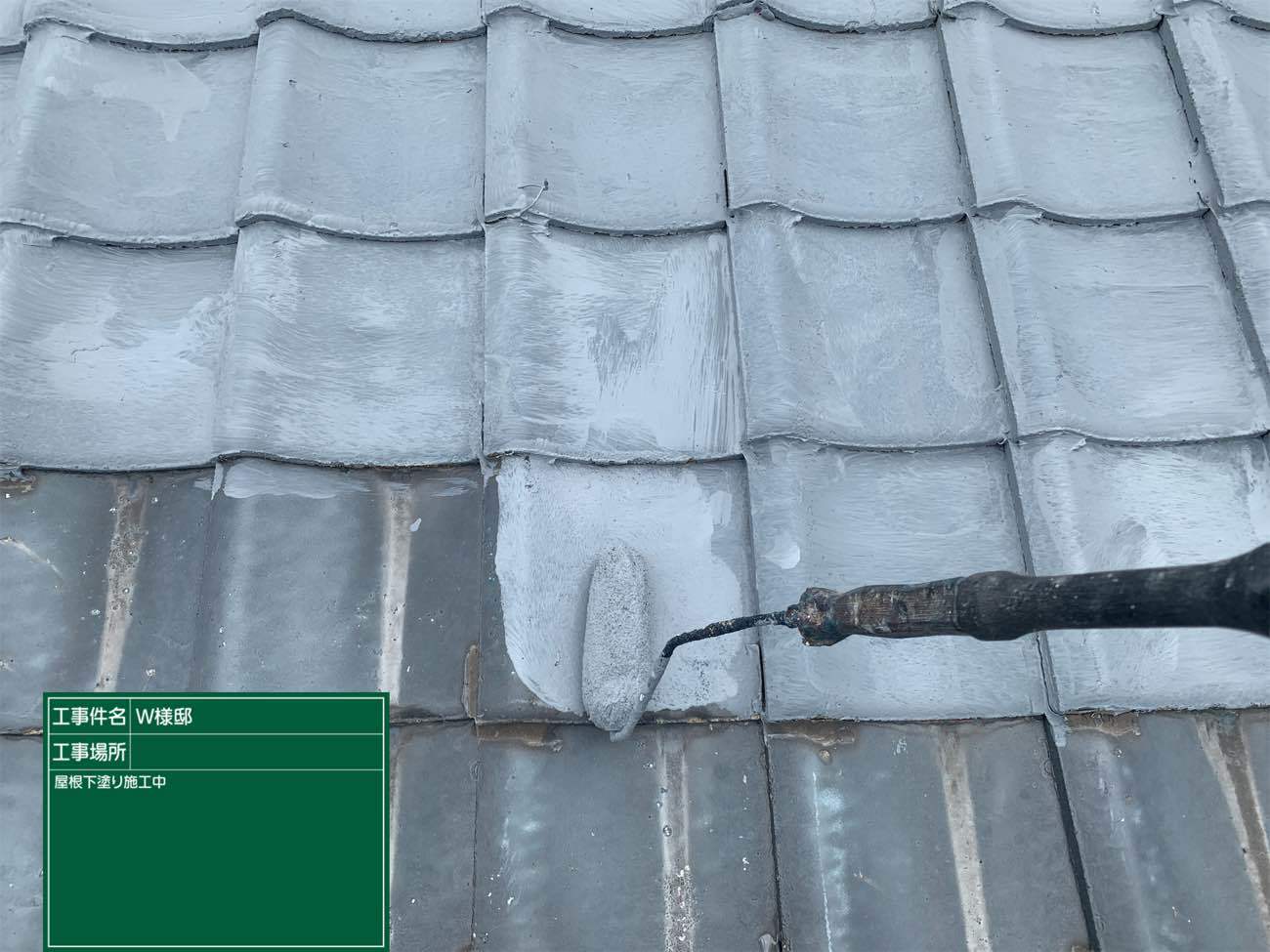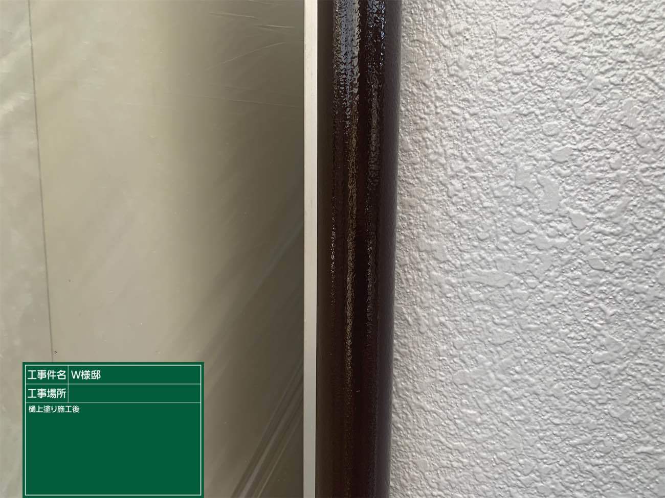外壁、屋根が3回塗りだったのに対し今回は上塗り2回で完了です。まずは1回目