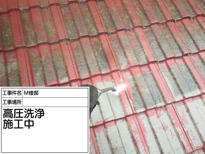 お屋根の洗浄を行っている様子です。 コケや藻など汚れを綺麗に洗い流します。