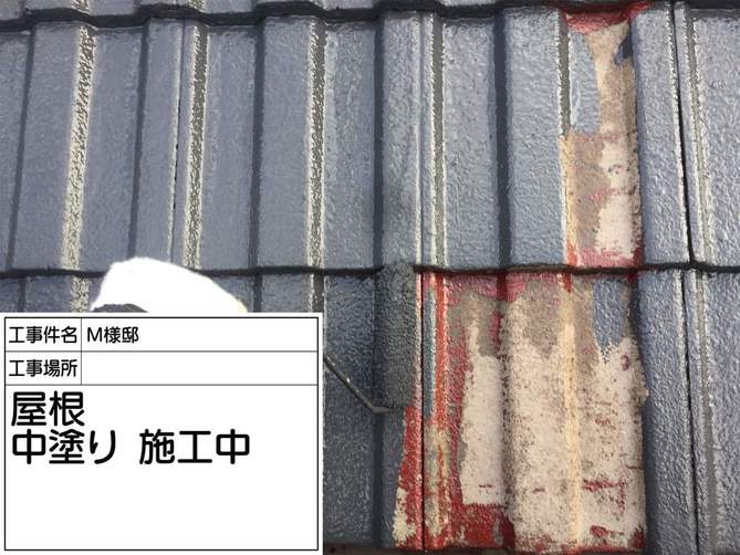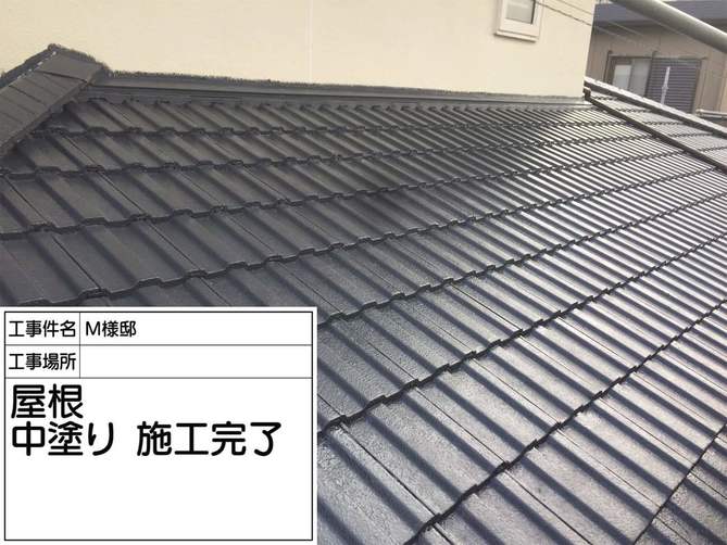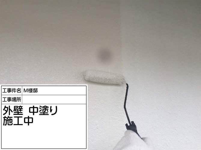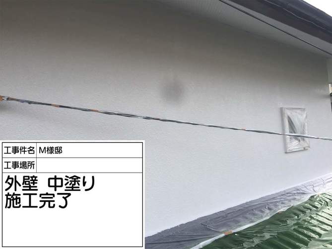 中塗り塗布完了です。 塗膜が剥がれていた箇所も丁寧に施工していきます。