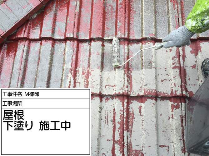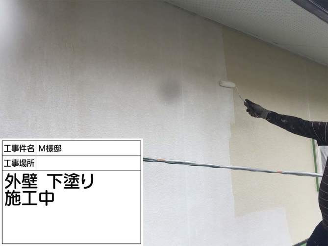 下塗り作業完了です。この工程で手を抜くと塗膜が剥がれる原因となります! 注意しましょう!!