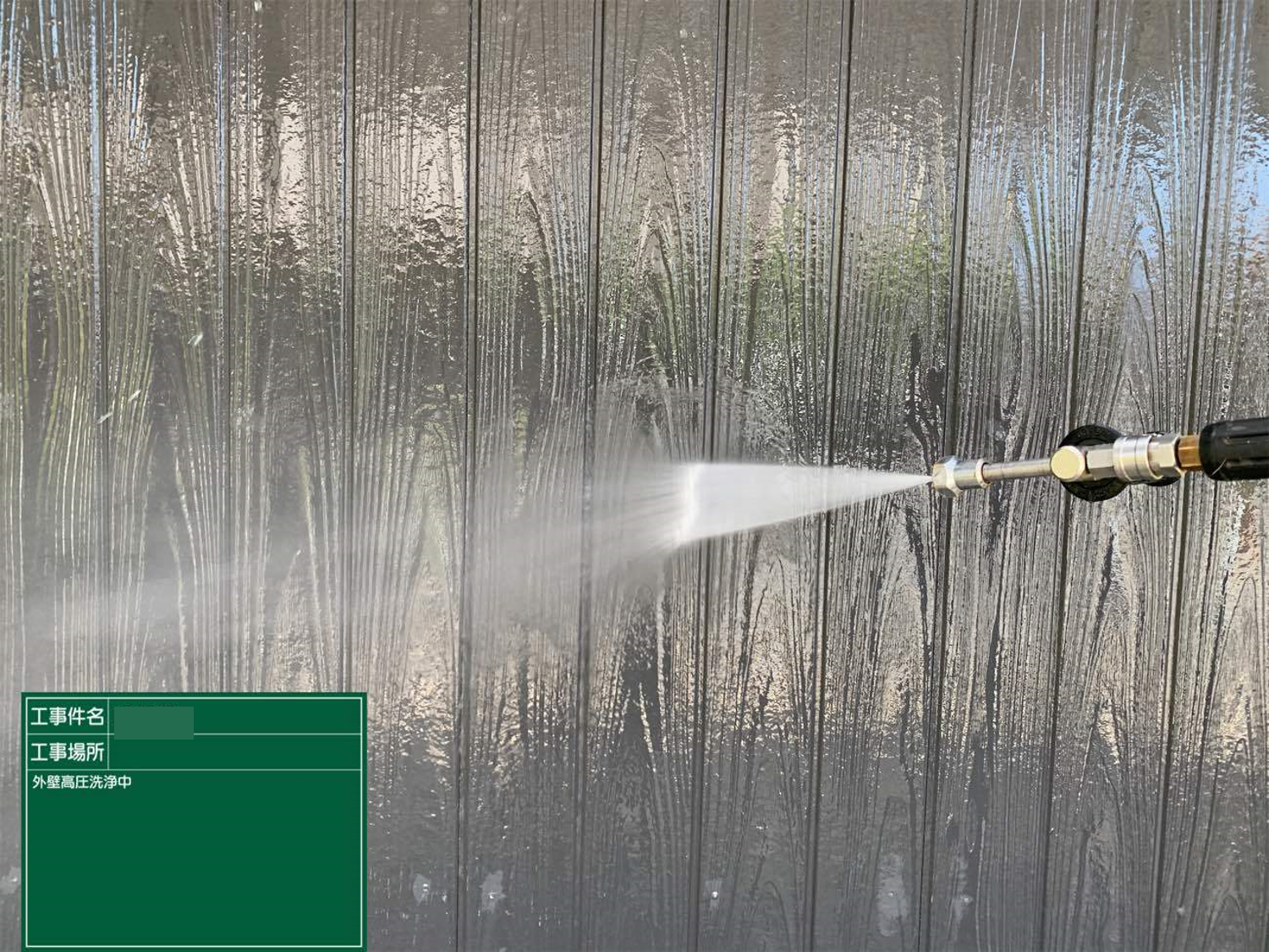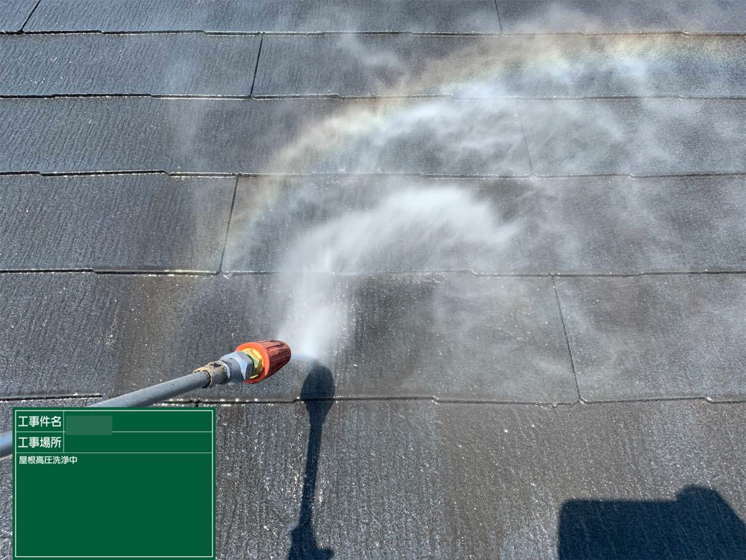 隅々までしっかりまじめに高圧洗浄中、なのですが、思いがけず虹が・・・!