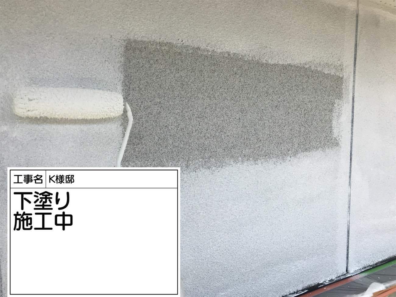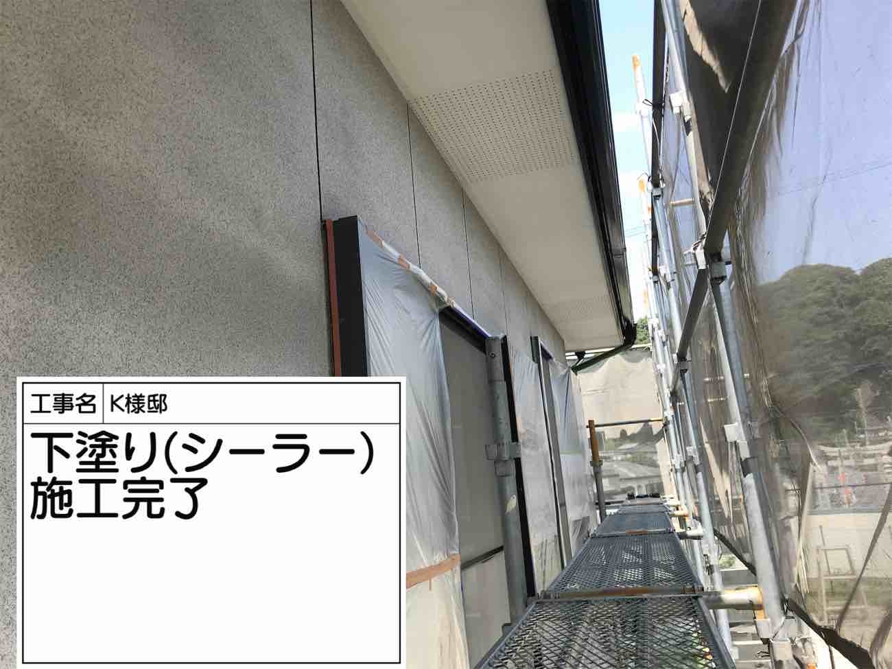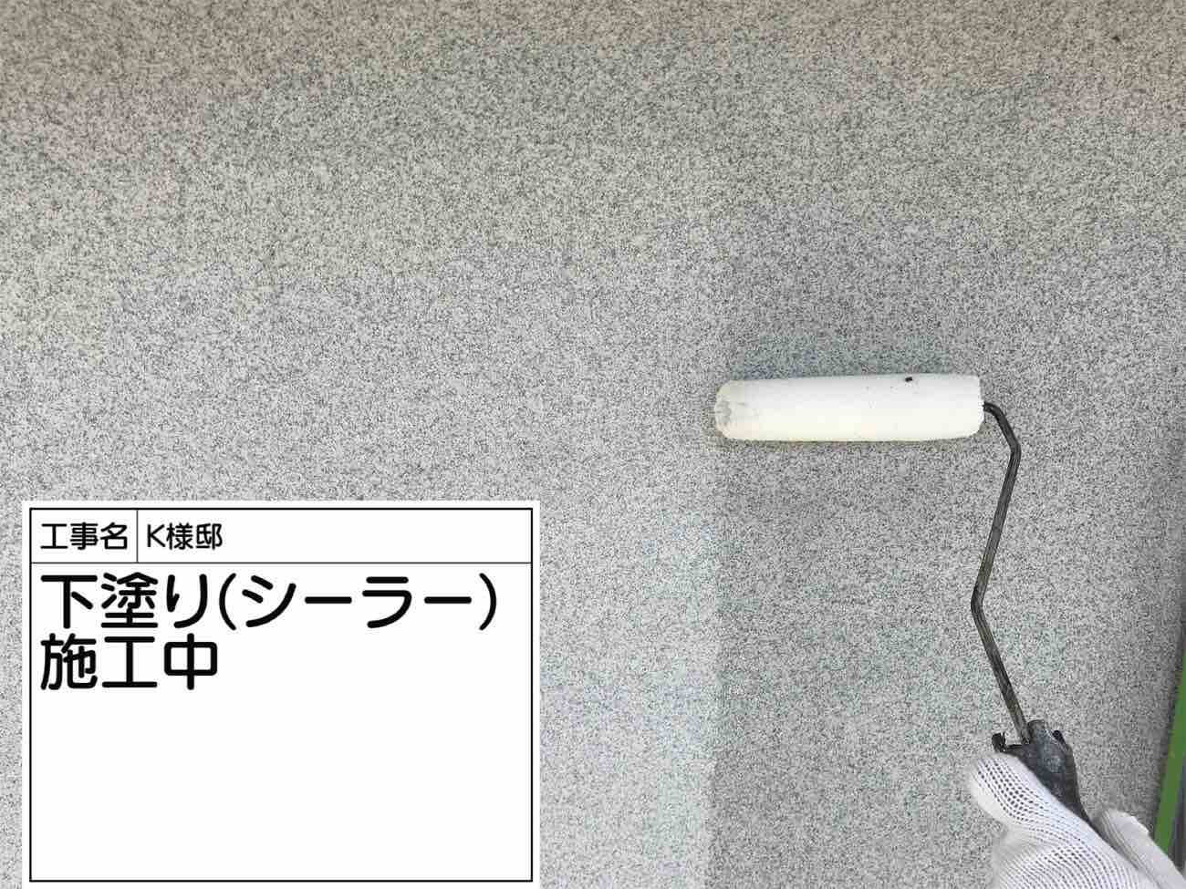 シーラーは今回のようなモルタル壁などの場合で使用します。表面がボロボロとはげ落ちるのを防ぎ塗料を吸いこみすぎないようにするための下地調整の役割です。