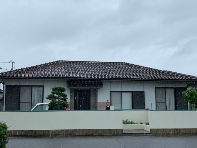 塗装箇所をくまなく洗浄していきます。今回のメインは外壁です。ちなみに屋根は陶器瓦なので塗装メンテナンスは必要ありません。