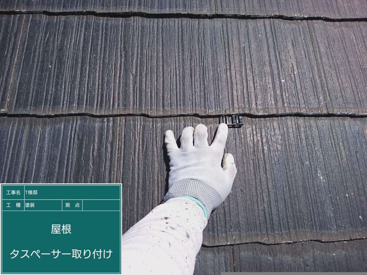 腐食や雨漏れを防ぐためタスペーサーを取り付けていきます。