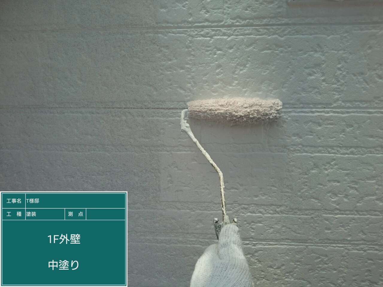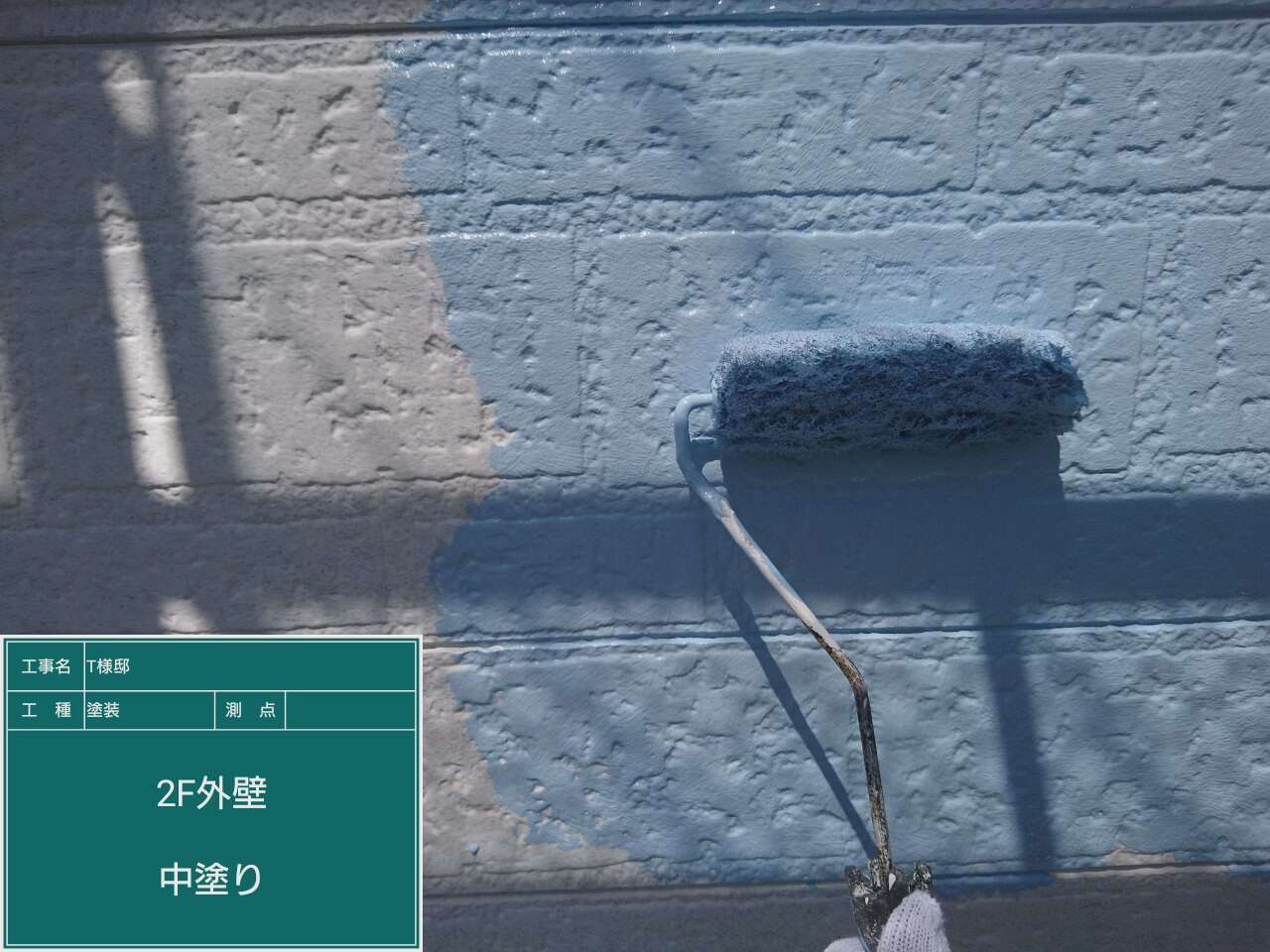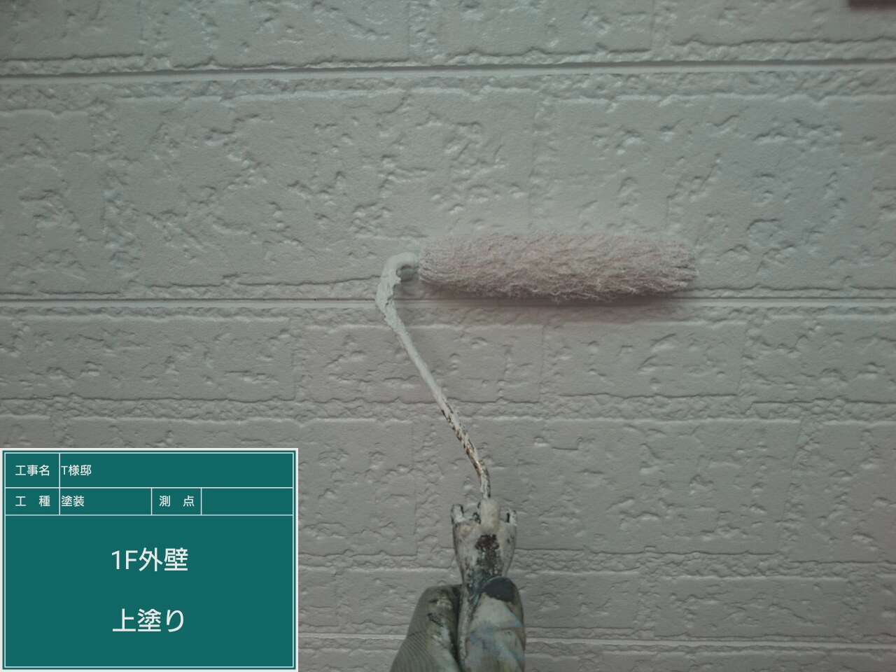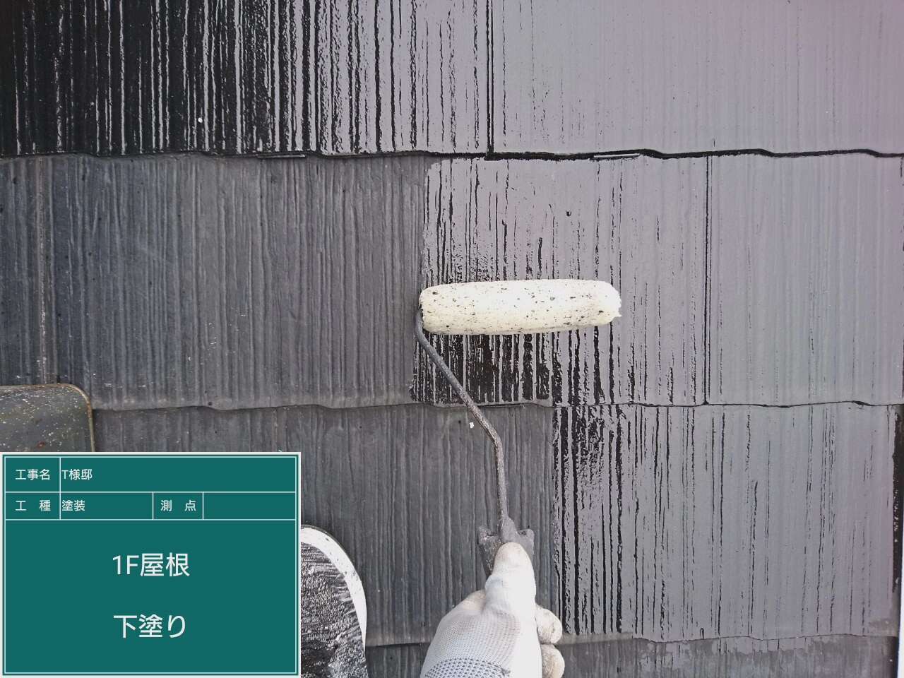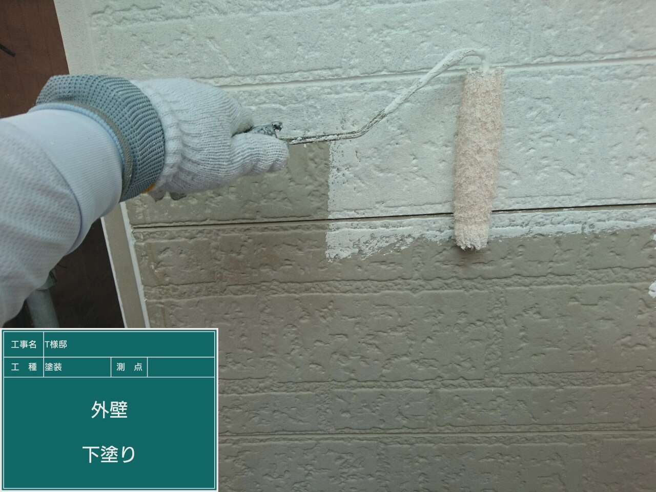 外壁の下塗り作業で中塗り塗料との密着度を高めます。