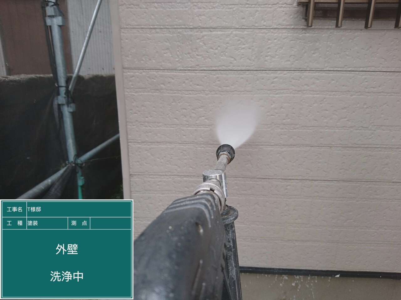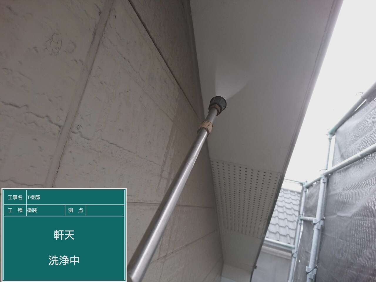 屋根同様、外壁や雨樋、軒天井などの付帯部分もしっかりと高圧洗浄していきます。