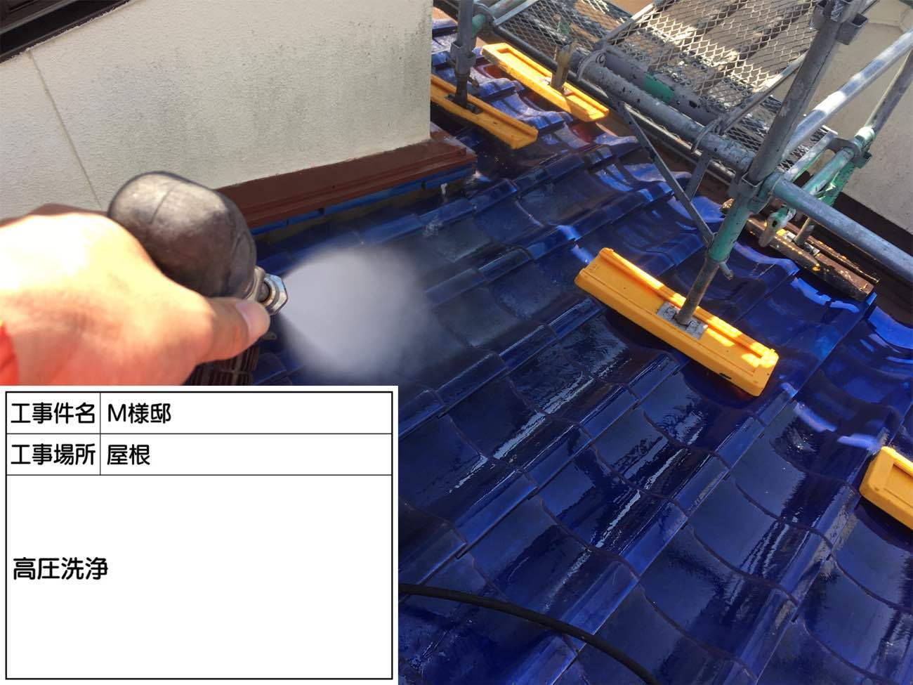 陶器瓦の洗浄を行います。
