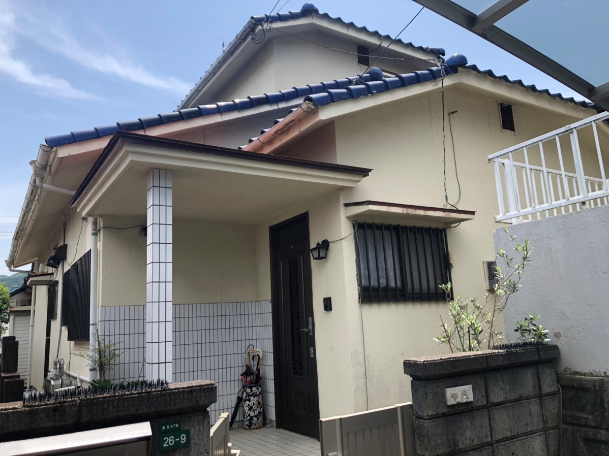 陶器瓦の鮮やかな青にマッチして、淡いブルーの外壁が涼しげな、爽やかな仕上がりとなりました。