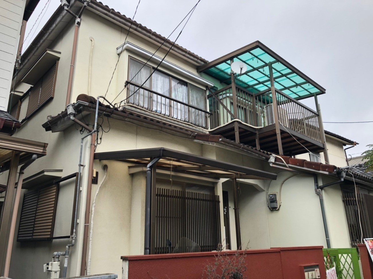 築40年の建物で、外壁の経年劣化に加え、雨樋の劣化や錆も見受けられたため、今回は塗装工事とあわせて雨樋交換・エアコン工事を同時に行いました。 近隣との距離が近...