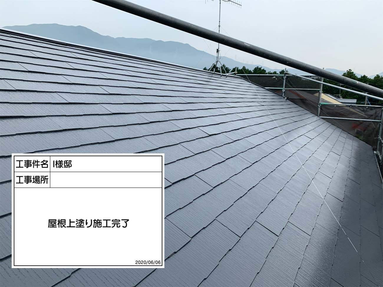 お屋根の施工完了です。 お屋根は特に直接紫外線の影響を受けてしまうので耐候性の高い塗料での塗装をお勧めします。