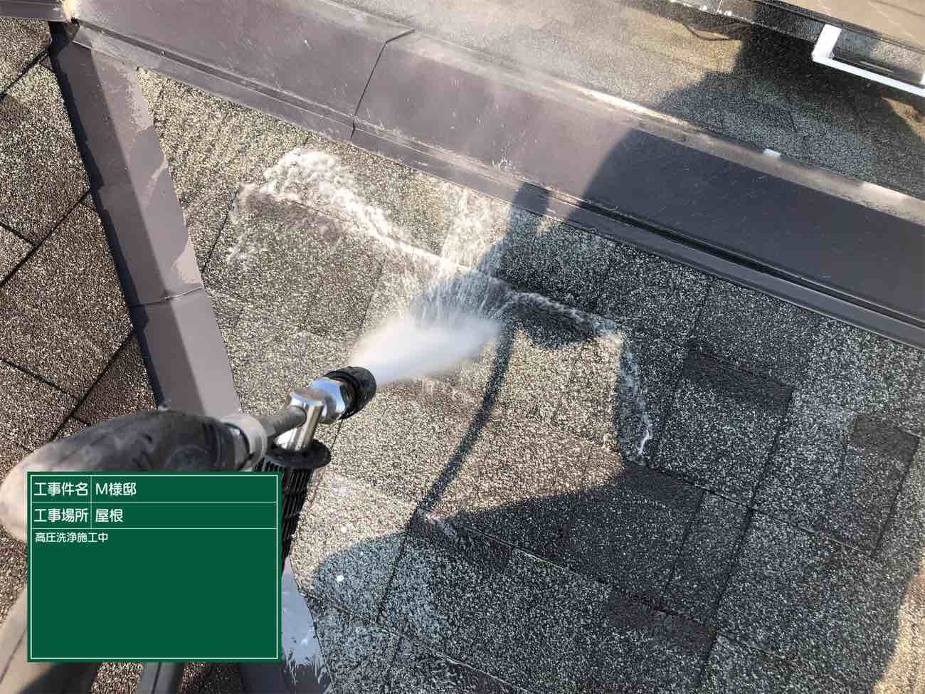 屋根もコケと汚れを洗い流していきます。