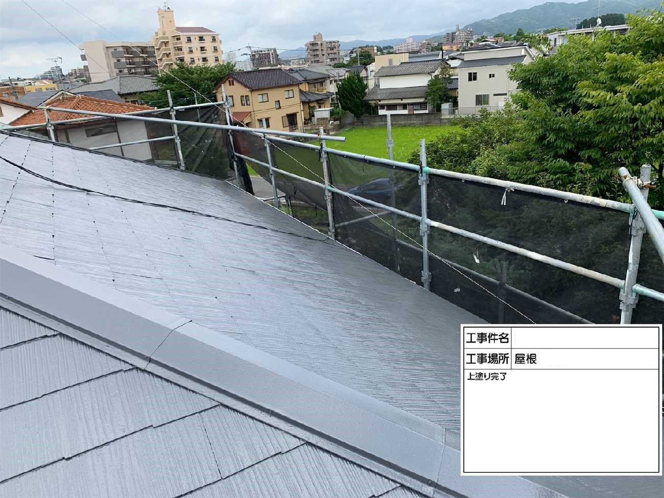 屋根の上塗りで耐候性を高めます。