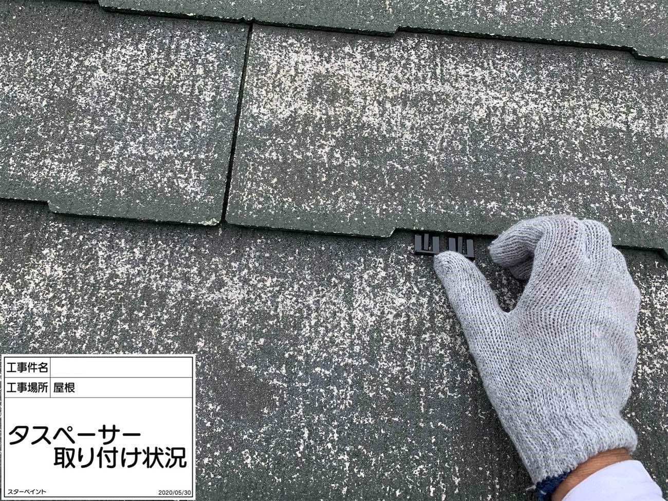 タスペーサーは屋根から垂れてきた塗料が、 屋根と屋根の間の隙間を塞いでしまうのを防止するための、画期的な道具です。