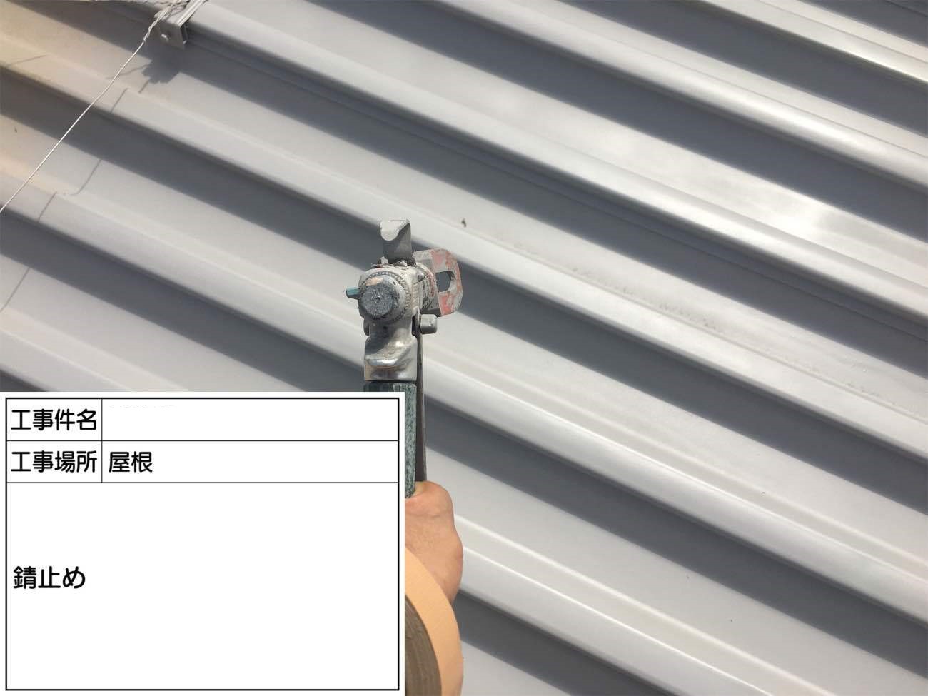 屋根は最初に錆止めをしっかり塗ります。 これで錆をつきづらくします。