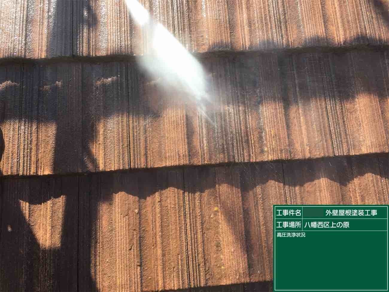 屋根も劣化しコケなどが付着してしまっていますので、高圧洗浄を使用しきれいにしていきます。
