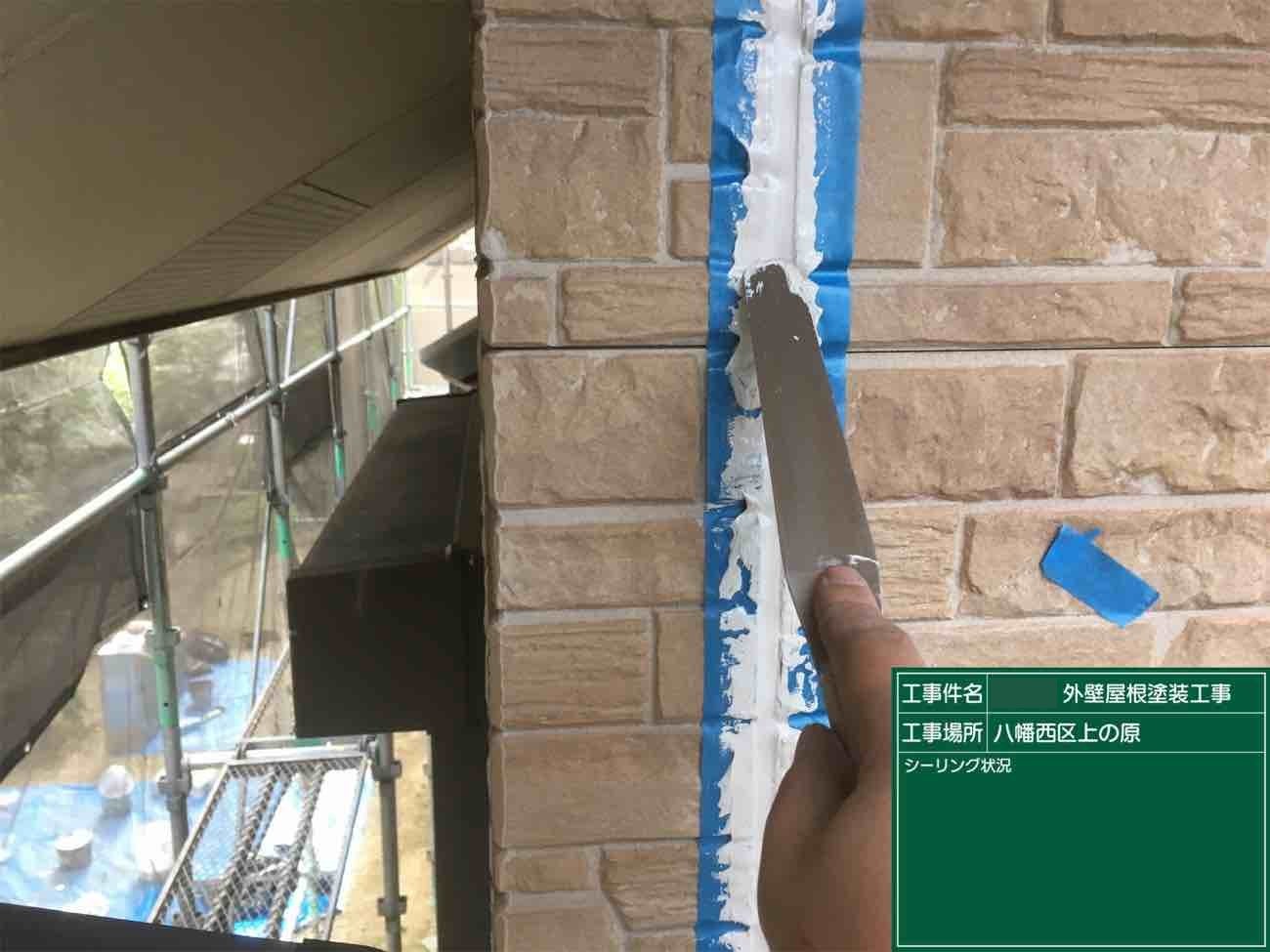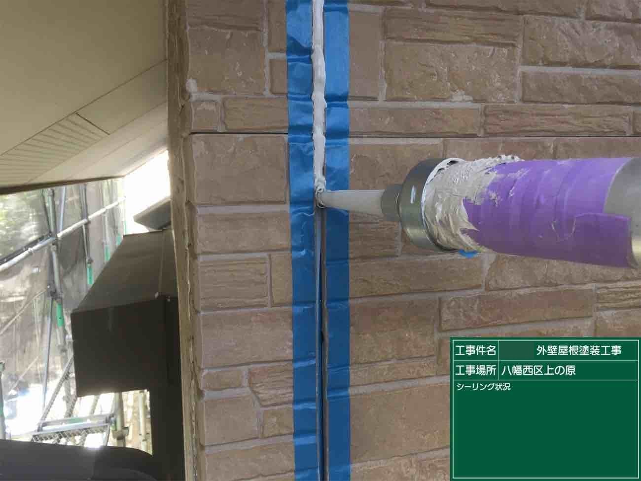 塗装作業を行う前に目地のシーリング打ち替え作業を行っていきます。
