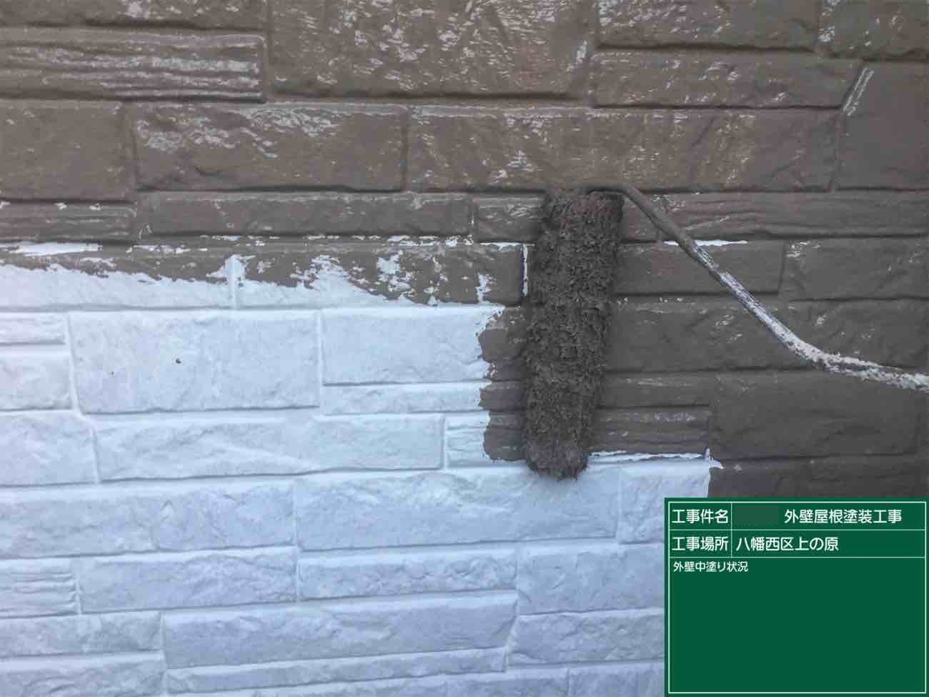 シーリングの充填が完了し乾燥させたら、外壁の塗装を行っていきます。