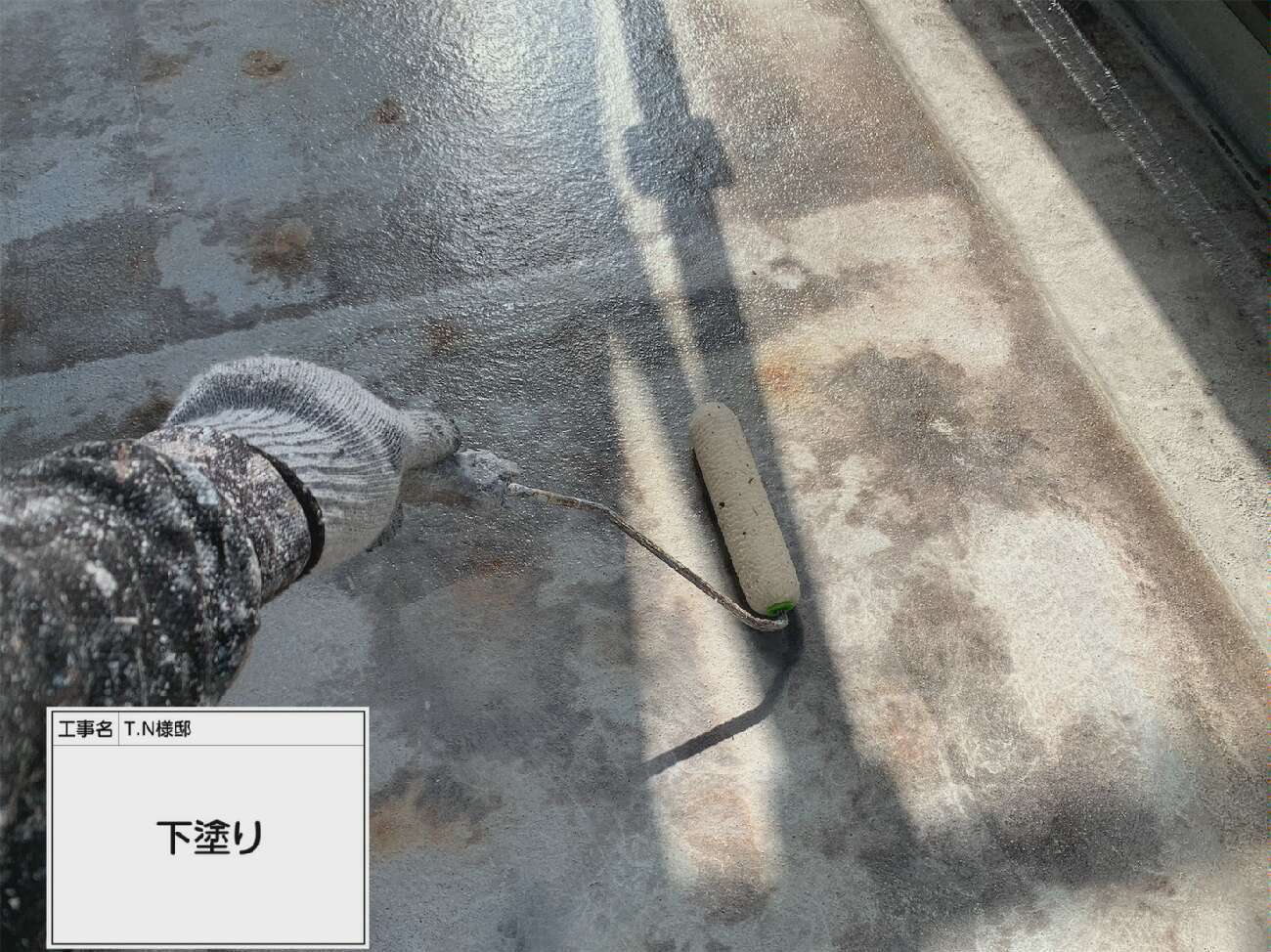 防水塗装を施す為のプライマー塗布作業です。