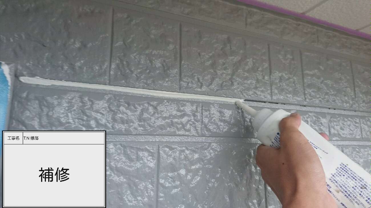 補修箇所がある場合は必ず塗装の前に補修を行います。今回はボードにできてしまった亀裂や隙間をシーリング補修していきます。
