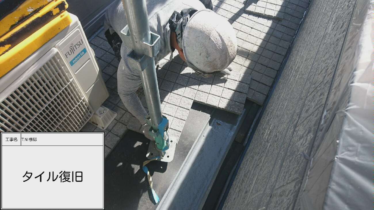 最後にシートと清掃したタイルを復旧していきます。