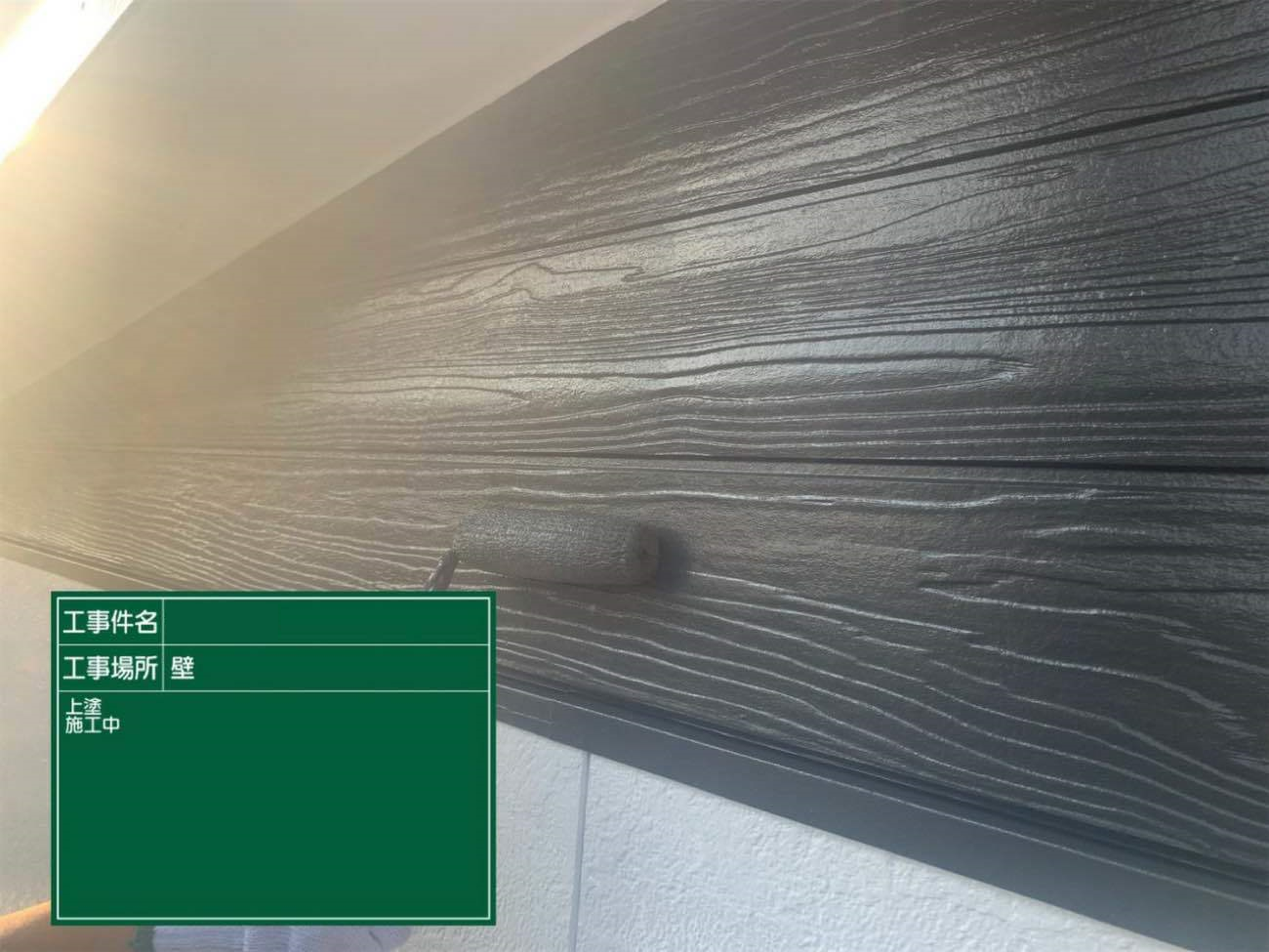 木目調のデザインが入ったサイディングボードの部分は重みのあるお色を入れていきます。