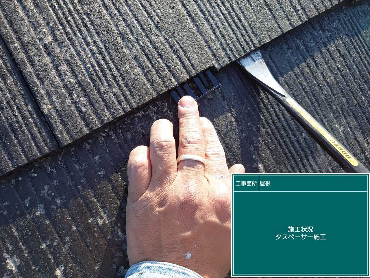 屋根にタスペーサーを取付していきます。