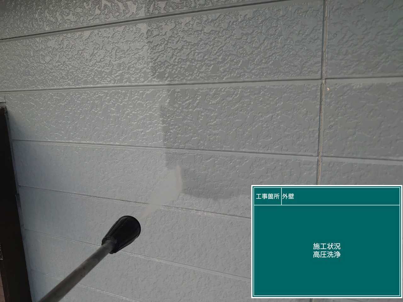 外壁も洗浄していきます。塗装を行う際に汚れがついていると塗料が密着しないため綺麗にしてから塗装を行う必要があります。