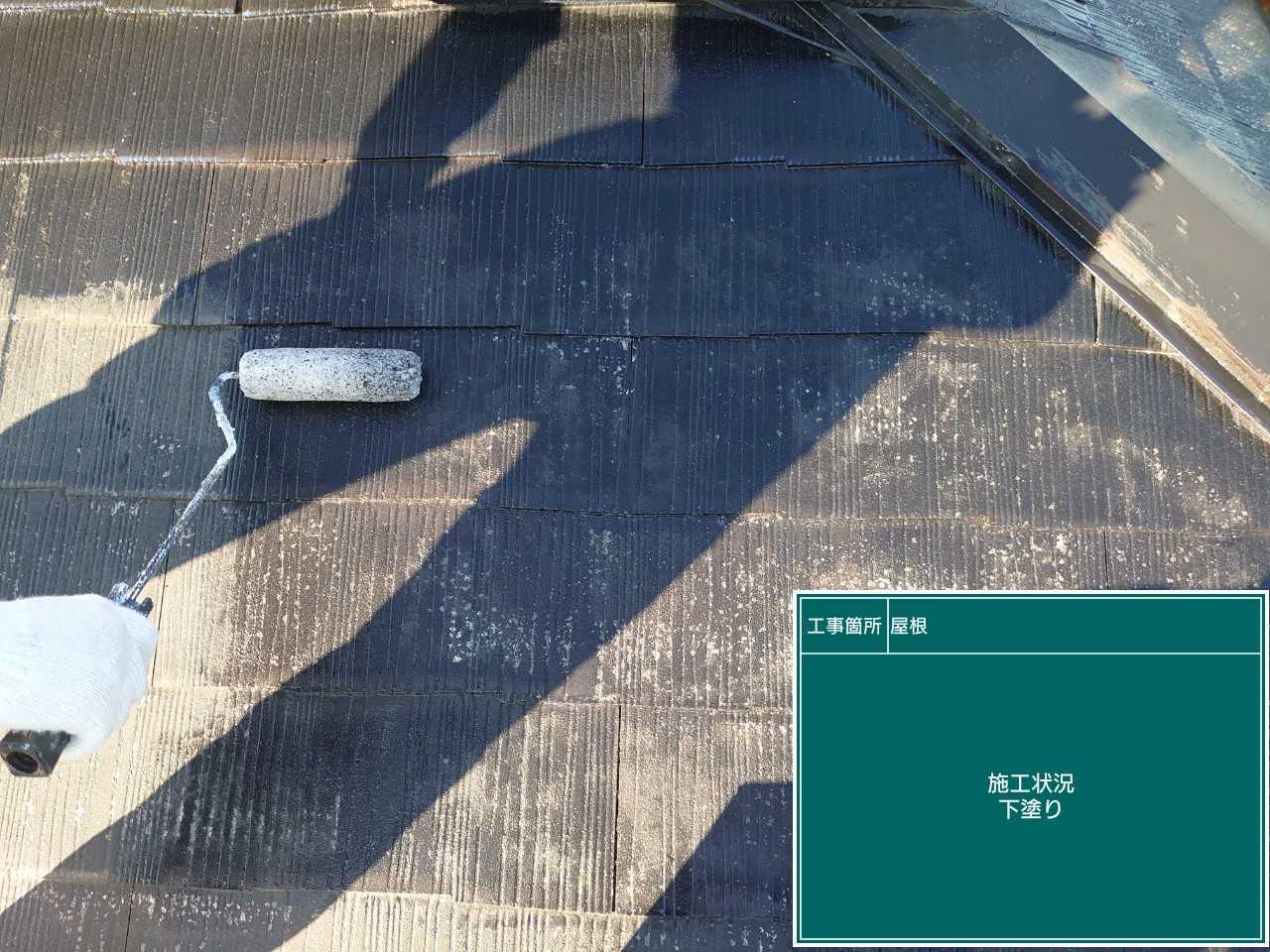 下塗りをしていきます。外壁同様、3回塗りを行います。