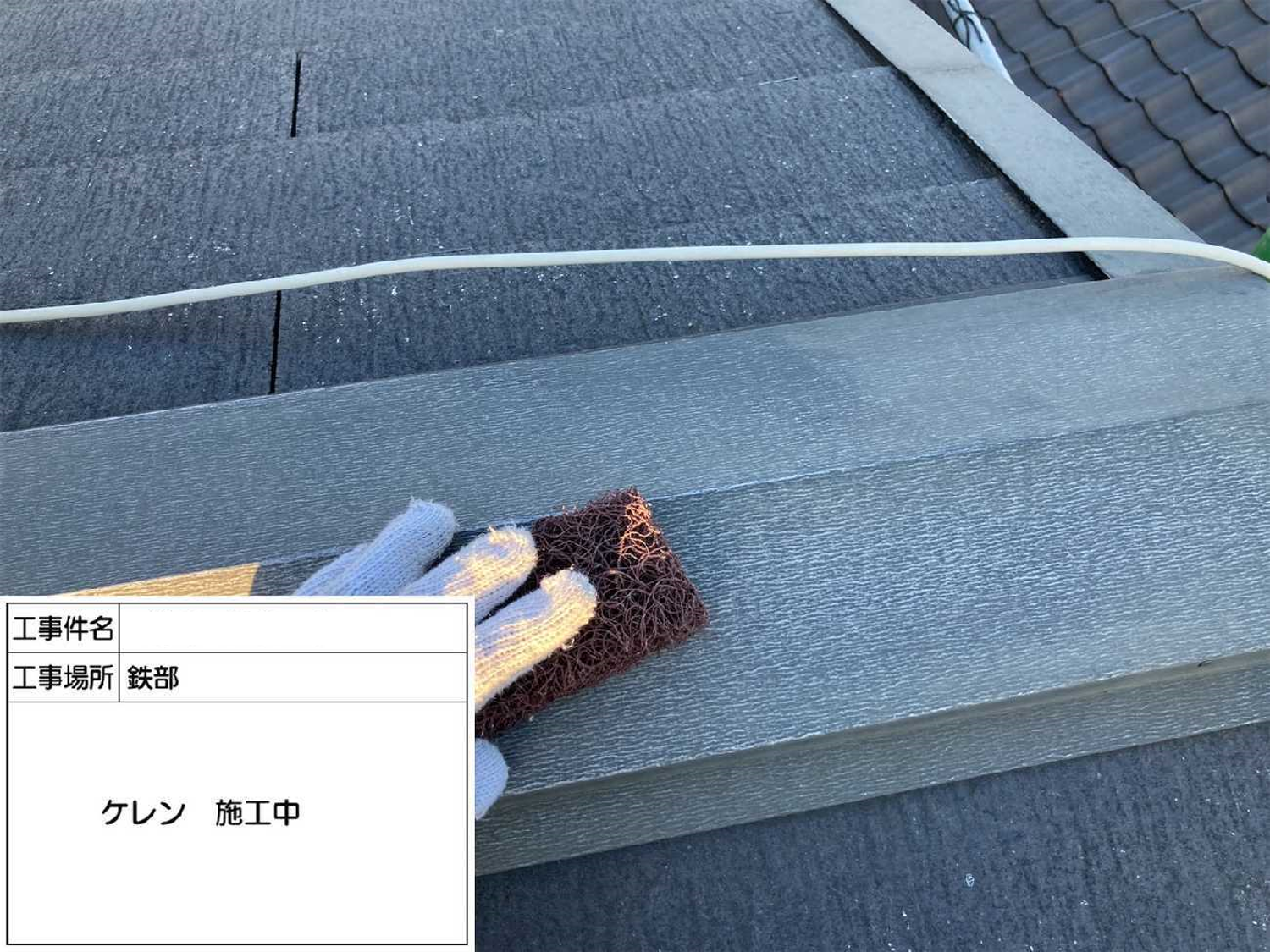 屋根 板金部分ケレン作業