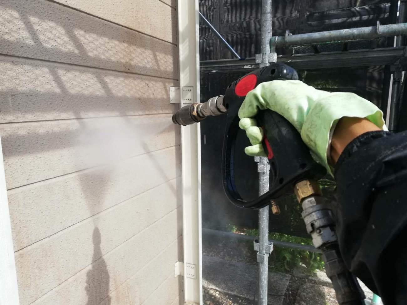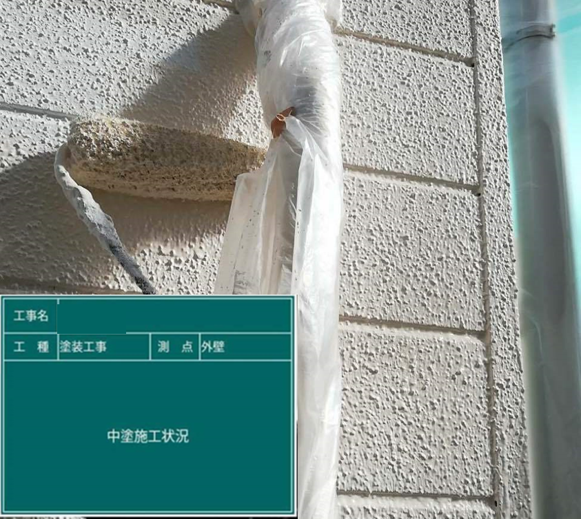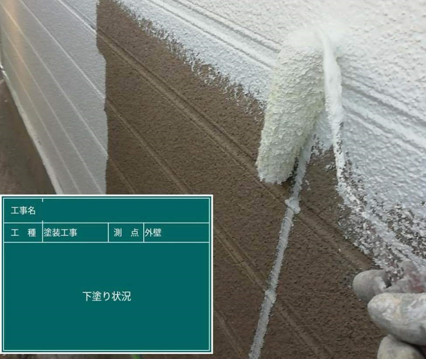 外壁の下ぬり工程です。この時点で柄は消えてしまいます。