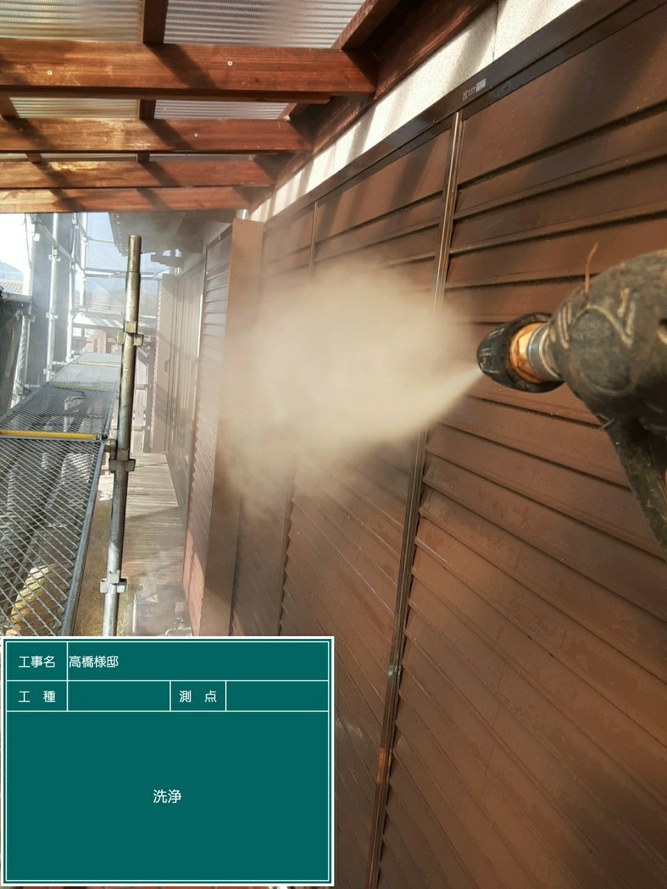 塗装箇所は付帯部であっても洗浄します。劣化の状況や基材によって高圧洗浄が不適切である場合はケレン作業などをもちいて下地処理を行います。