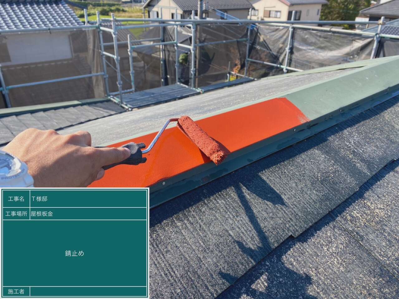 鉄製の部分は錆止め塗布が必須です。細かい部分は刷毛なども使用しながら塗っていきます。