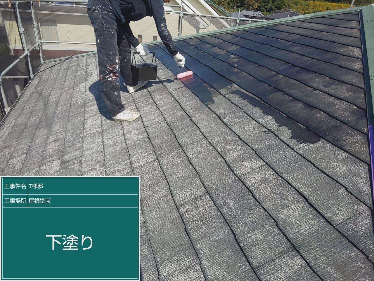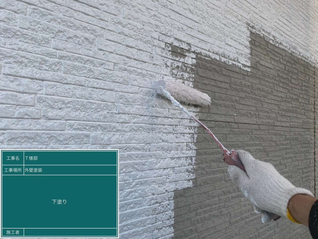 白い下塗り塗料を塗っていきます。塗料の密着性を高めるだけでなく、淡い色から濃い色までしっかり発色させることが出来ます。