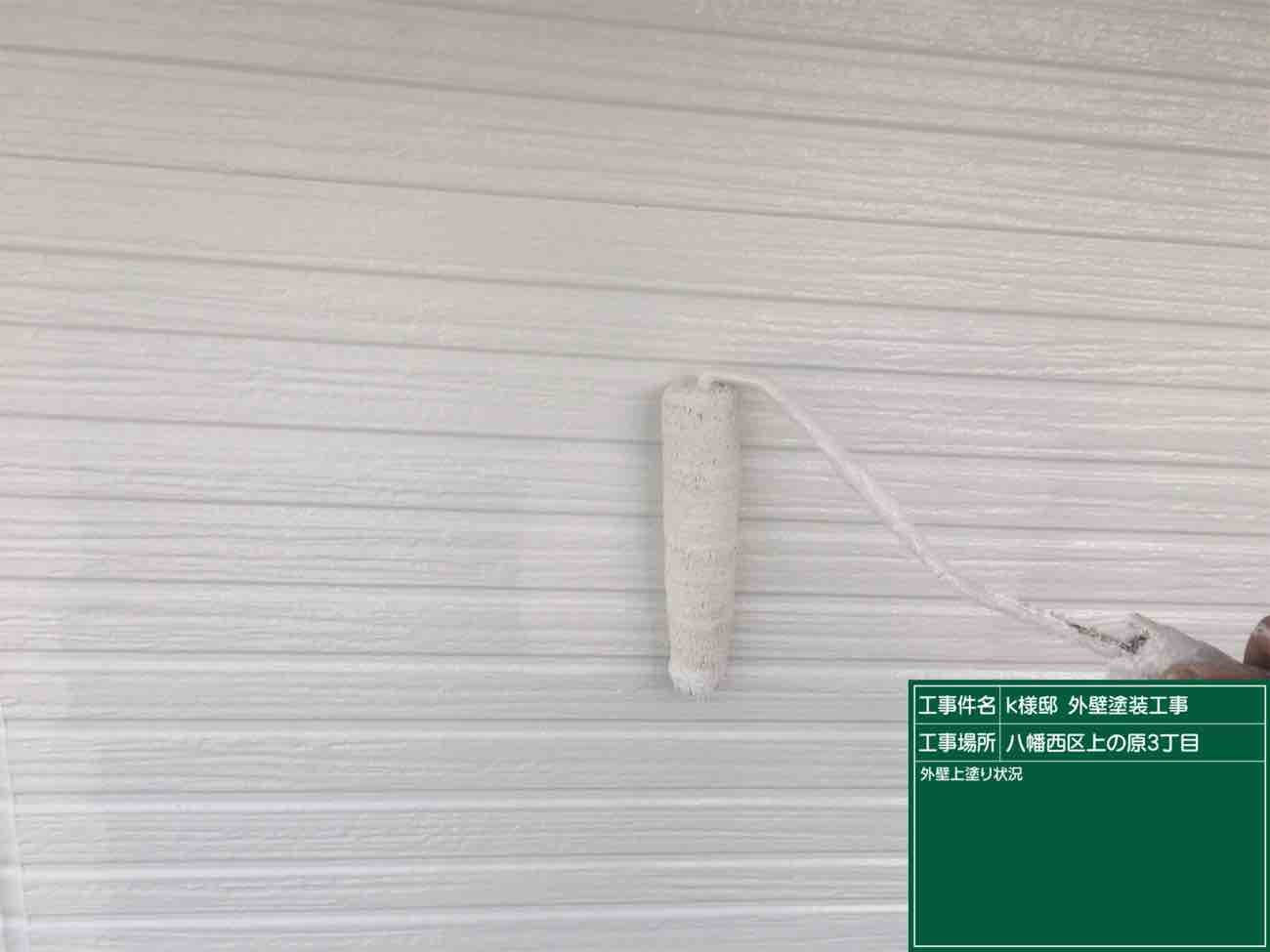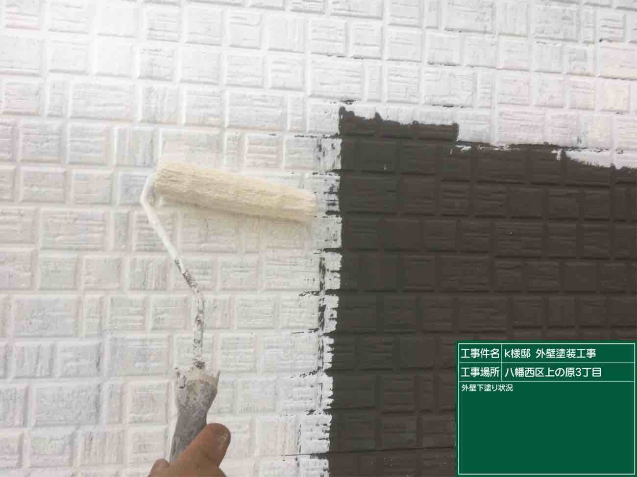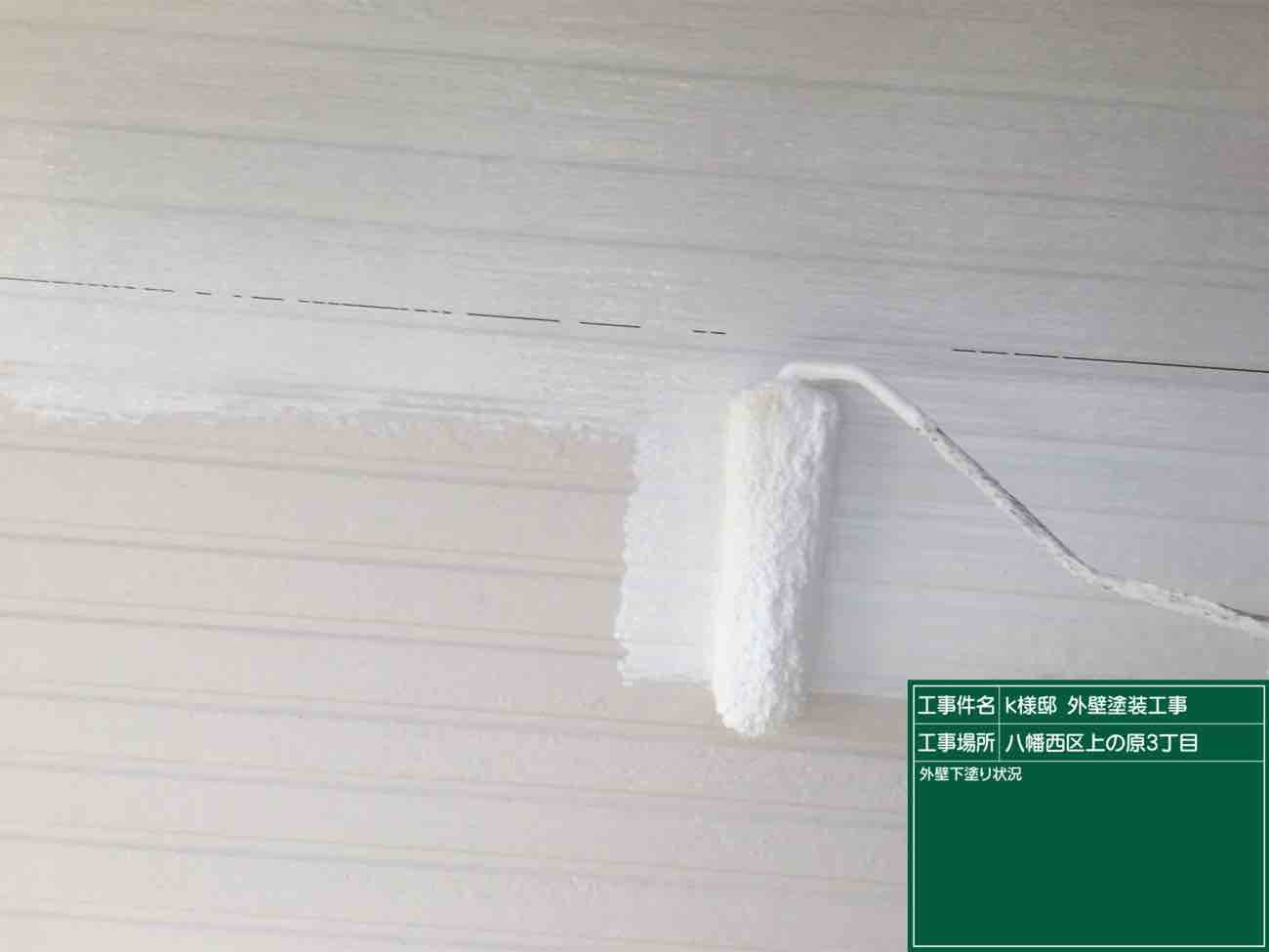 外壁の塗装を行っていきます。今回は外壁は2色仕上げになりますので 下塗りから塗っていきます。