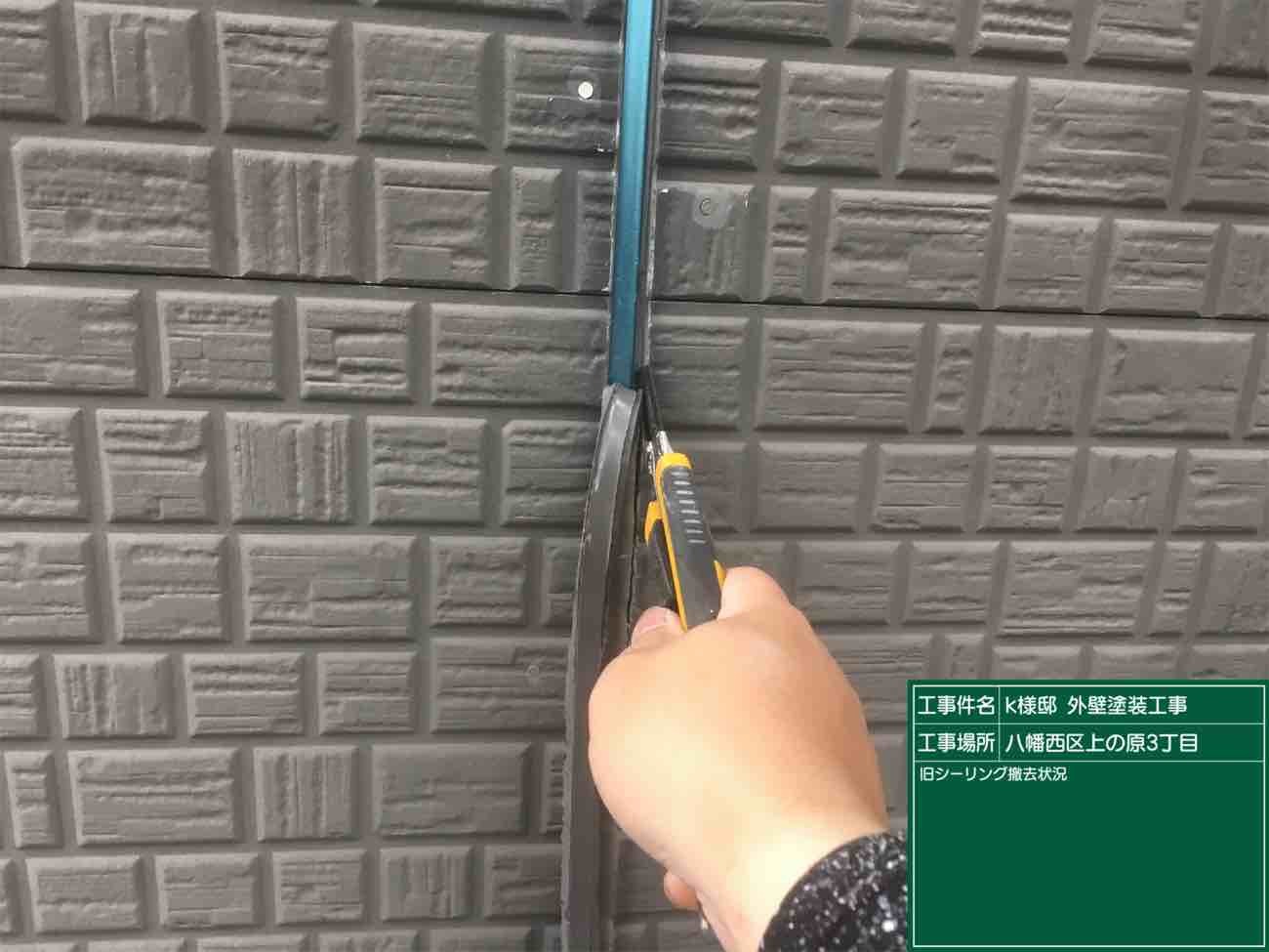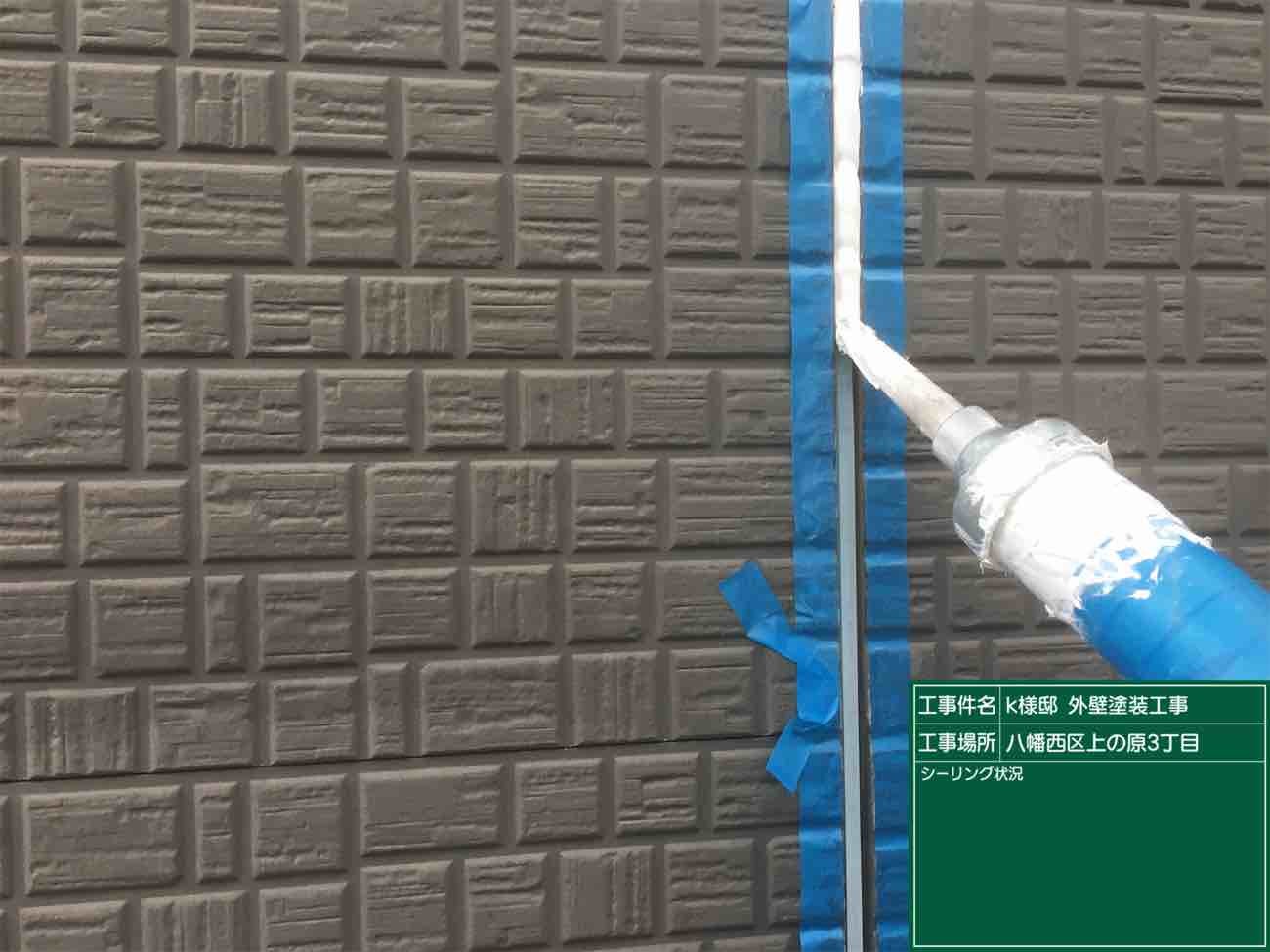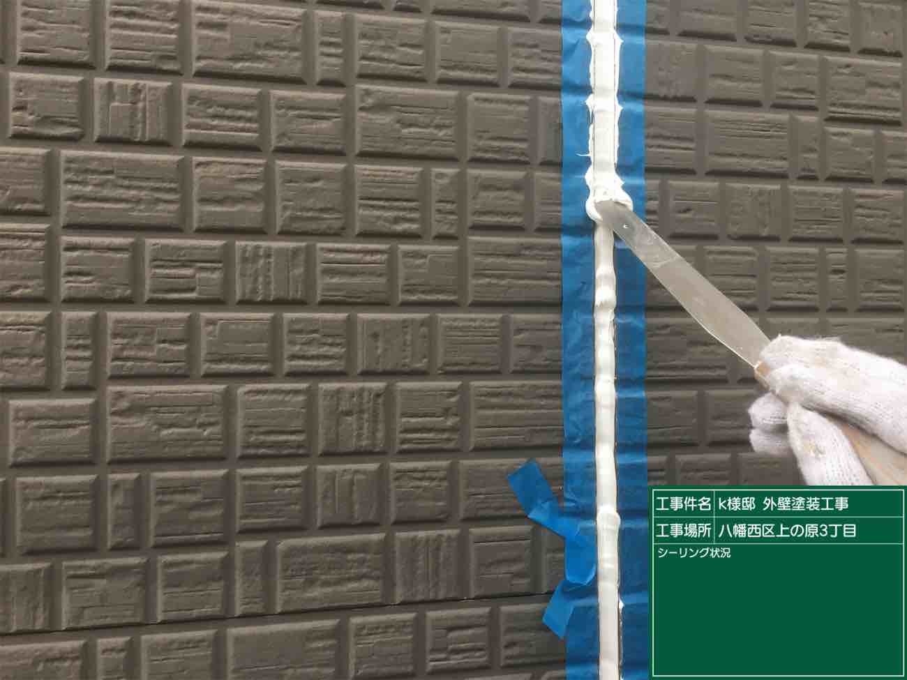 シーリング充填後は押さえて目地に均一に充填されるようにしていきます。